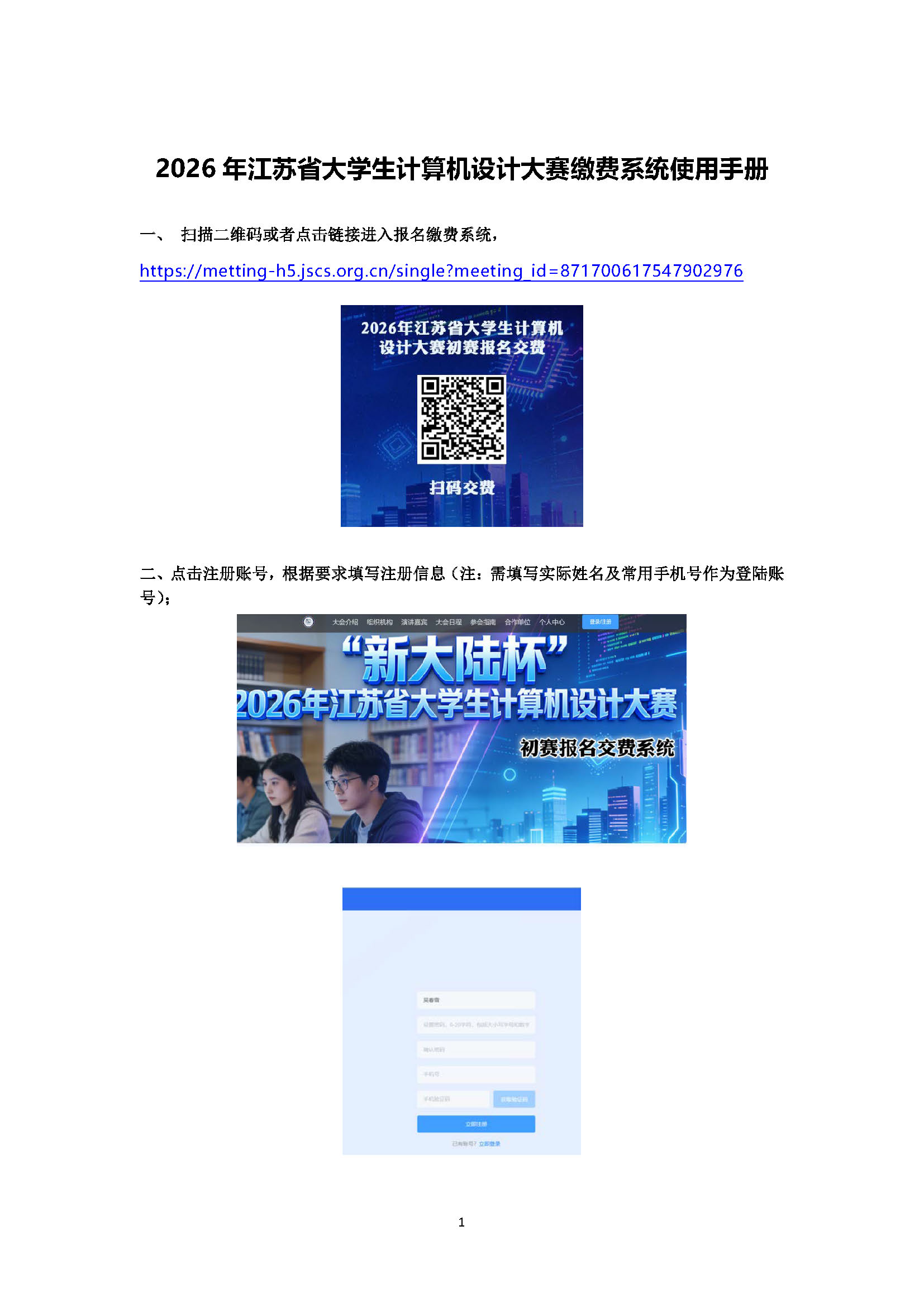 2026年江苏省大学生计算机设计大赛缴费系统使用手册