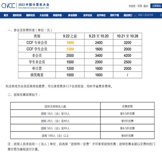 为了更好的服务会员,学会将组团参加CNCC2023,会员以更优惠的注册费用参加此次高水平的会议,具体价格见下图: