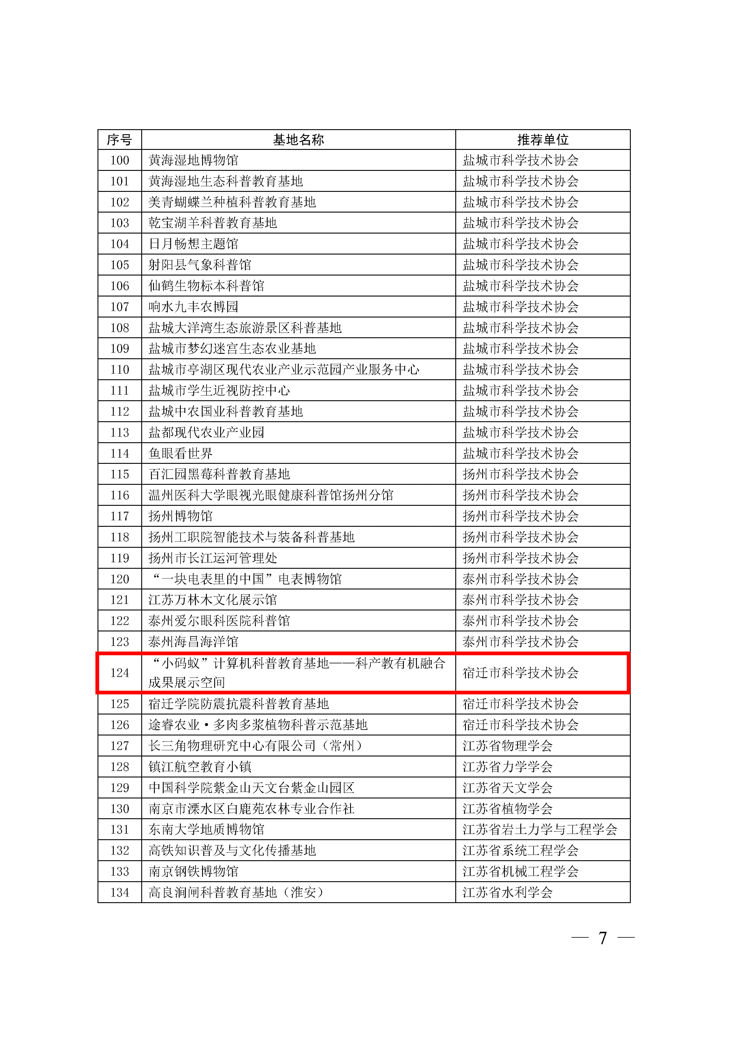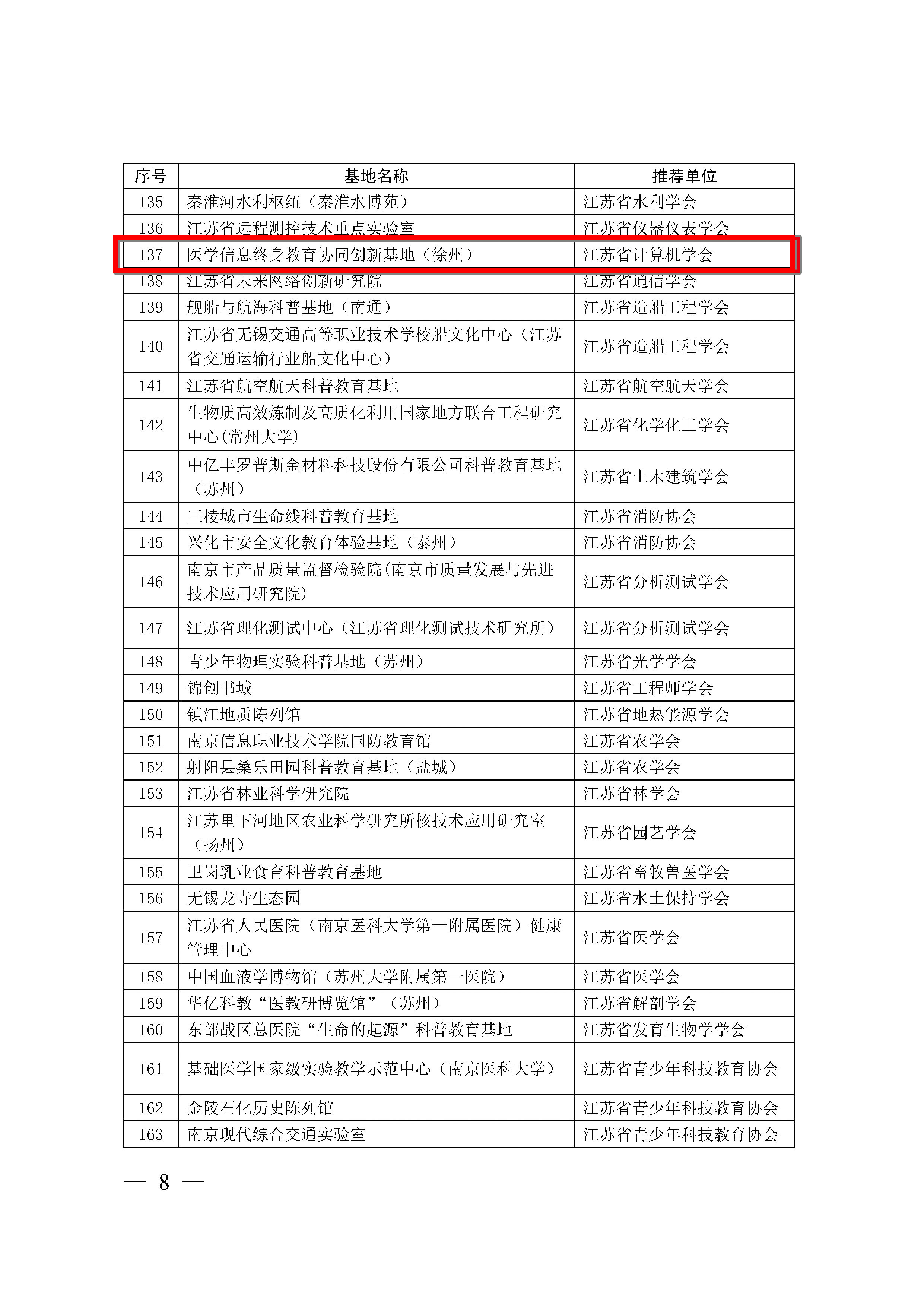 近日,江苏省科学技术协会、江苏省哲学社会科学界联合会、江苏省科学技术厅、江苏省教育厅联合发布《关于认定2023年度江苏省教育基地的通知》(苏科协发〔2023〕135号),我学会下设的江苏省计算机科普教育基地中有两家基地获评2023年度江苏省科普教育基地。分别为徐州医科大学的“医学信息终身教育协同创新基地”和宿迁学院的“‘小码蚁’计算机科普教育基地——科产教有机融合成果展示空间”。