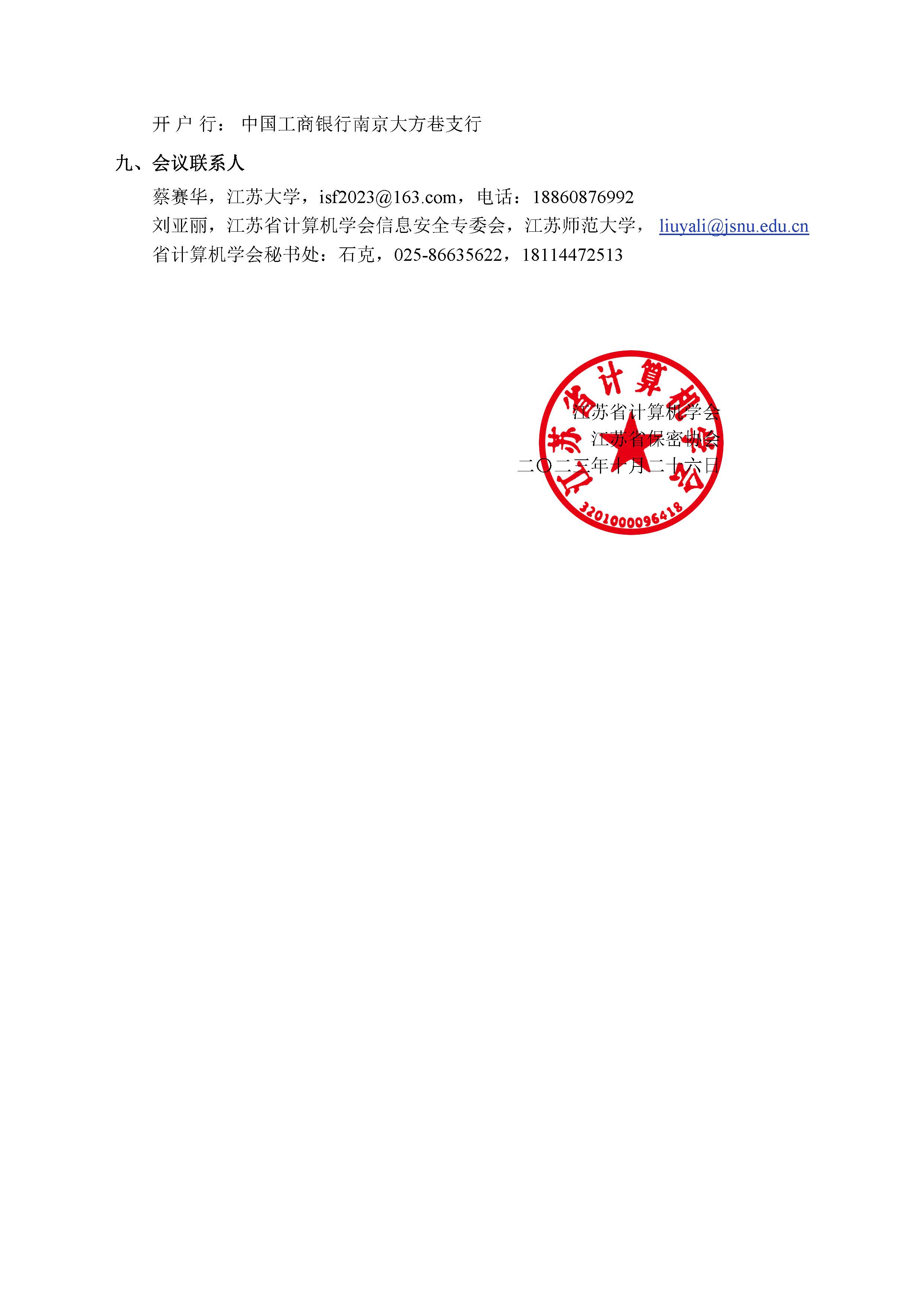 秘书处市内联络点 地址: 江苏省南京市汉口路22号 邮编:210093 电话/传真:025-86635622
