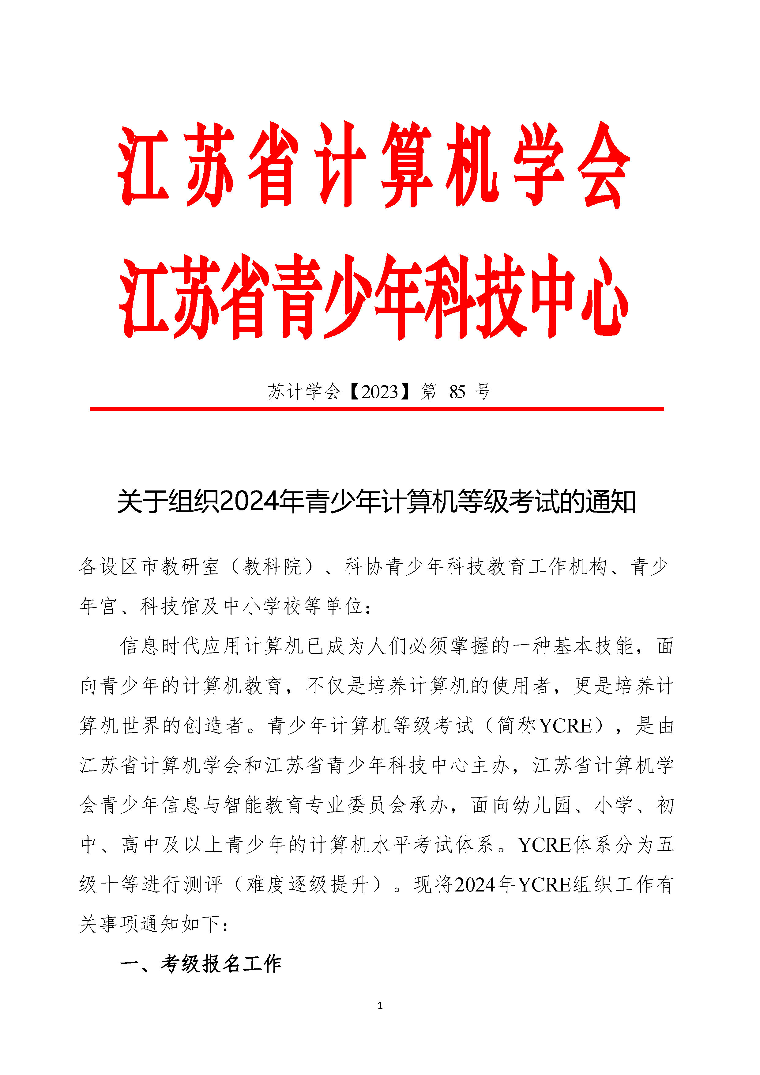 关于组织2024年青少年计算机等级考试的通知