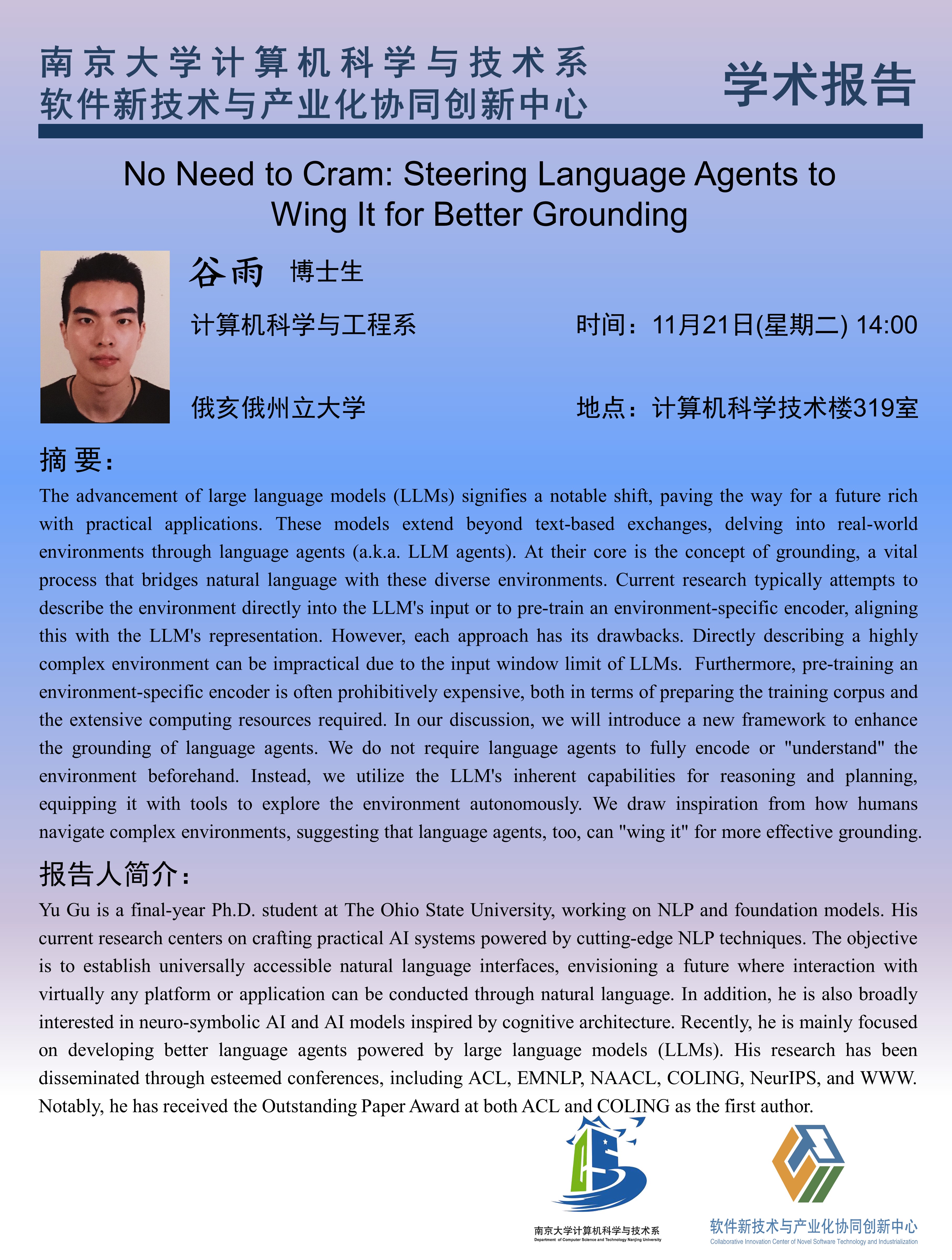学术报告《No Need to Cram: Steering Language Agents to Wing It for Better Grounding》