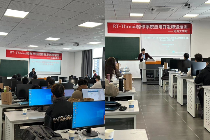 2023年12月1-3日由江苏省计算机学会和上海睿赛德电子科技有限公司联合主办,河海大学承办的“RT-Thread操作系统应用开发师资培训”在河海大学金坛校区落下帷幕,来自江苏省内10多所院校近30多位教师参加了此次培训。