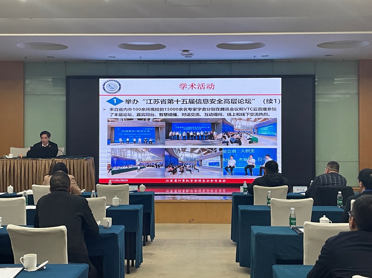 2023年11月25日晚,江苏省计算机学会信息安全专业委员会工作会议在镇江市成功召开,信息安全专委会委员和新增委员候选人参加会议,专委会秘书长刘亚丽教授主持工作会议。