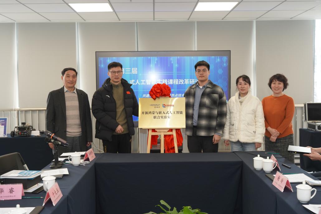 会议最后,江苏省计算机学会嵌入式专委会主任王宜怀教授总结了嵌入式人工智能的实践与教育,指出应该强调轻量化、小模型,希望在教材编写中能够将人工智能的复杂概念简化,希望大家共同努力,推动嵌入式人工智能的发展。苏嵌教育与江苏润和就共建“开源鸿蒙与嵌入式人工智能联合实验室”进行了签约与授牌仪式。