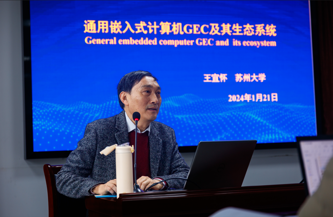 苏州大学王宜怀教授担任此次培训会议的主讲教师,王教授结合自身教学与科研工作的经历,梳理了嵌入式与嵌入式操作系统的教学脉络,对GEC的生态做了详细介绍,同时王教授深入浅出的介绍了嵌入式与嵌入式操作系统中教学的难点与重点,以及各个层次的院校在教学中应该如何把握教学的尺度。
