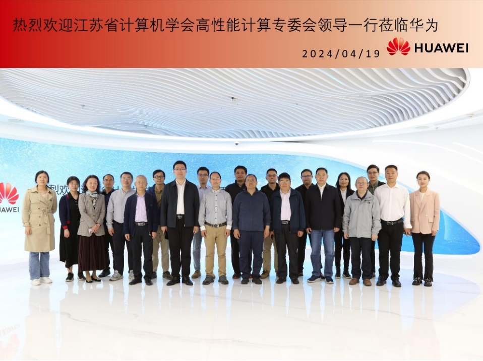 为贯彻落实习总书记在全国两会期间对江苏提出的“成为发展新质生产力的重要阵地”的指示精神,2024年4月19日,江苏省计算机学会高性能计算专委会一行20余人走进华为江苏区域总部,参观华为江苏硬核科技对话室并开展技术交流活动,了解与学习华为在ICT根技术领域的持续创新能力和成功实践,共同探讨江苏“三力”与新兴产业和未来产业发展的新趋势、新挑战和新机遇,为华为更好地服务江苏高质量发展建言献策。