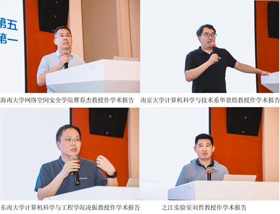 大会学术报告由南京大学石进教授主持,海南大学网络空间安全学院院长曹春杰教授作题为“区块链安全监管关键技术与应用”的学术报告,探讨区块链监管安全挑战及关键技术,介绍围绕海南区块链基础设施和区块链综合试点开展的应用情况。南京大学计算机科学与技术系华景煜教授作题为“大语言模型Prompt中的安全与隐私问题初探”的学术报告,探讨大语言模型蕴含的安全与隐私风险,分享Prompt中隐私保护与大模型越狱的研究探索。东南大学计算机科学与工程学院凌振教授作题为“第三方RPC服务场景下的以太坊用户去匿名方法”的学术报告,分享RPC服务场景中以太坊用户去匿名攻击的创新方法。之江实验室高级研究专家刘哲教授作题为“Shardora:构建高安全性能的区块链系统”的学术报告,分享高安全高性能区块链分片系统Shardora的关键技术。
