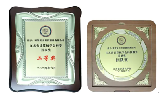 在同期举办的第十三届江苏省计算机大会JSCS2024颁奖典礼上,博智安全《基于AD-XDR的先进制造业工控安全防护平台》荣获江苏省计算机学会科学技术奖二等奖。博智安全凭借优秀的工作成果,被授予“江苏省计算机学会科技服务贡献奖团队奖”。