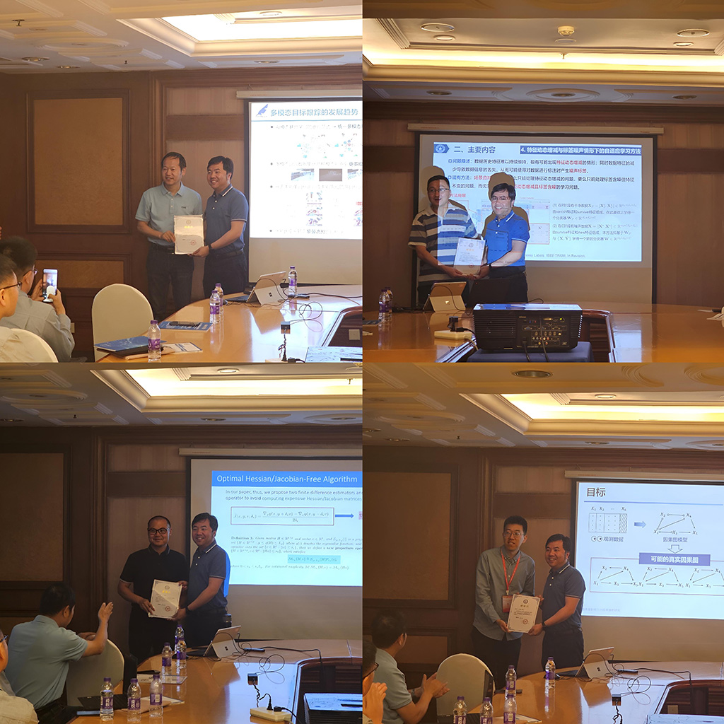 论坛邀请了国际模式识别学会会士(IAPR Fellow)、亚太人工智能学会会士(AAIA Fellow)、江南大学研究生院院长吴小俊教授,国家级人才计划入选者、湖南省杰青、国防科技大学侯臣平教授,国家海外高层次青年人才、南京航空航天大学黄飞虎教授,南京大学毓秀青年学者王天佐博士就人工智能领域的热点话题、核心技术进行了四场精彩的报告,报告内容涉及“多模态目标跟踪”、“动态场景流数据”、“Bilevel Optimization”、“隐变量因果推断”等多个方面。江苏省计算机学会人工智能专委会主任黎铭教授到场进行了致辞,