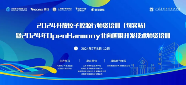 2024年7月8日-12日,由江苏省计算机学会与开放原子开源基金会(以下简称“开源基金会”)联合主办、深圳市腾讯计算系统有限公司作为战略合作单位、江苏农林职业技术学院和拓维信息系统股份有限公司及湖南开鸿智谷数字产业发展有限公司共同承办、江苏数智碳链科技有限公司协办的"2024开放原子校源行师资培训(句容站)暨0penHarmony北向应用开发技术师资培训"圆满举行。