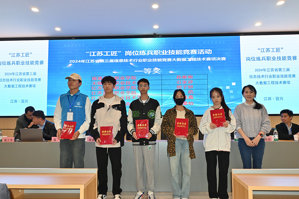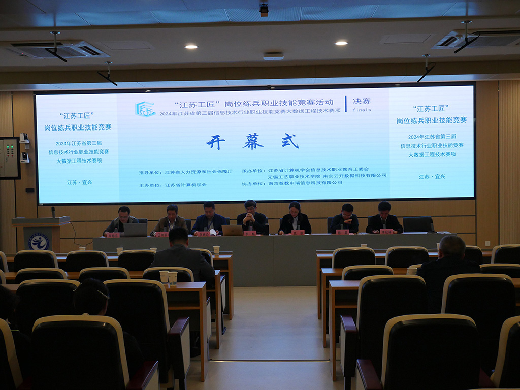 2024年10月26日至27日,“江苏工匠”岗位练兵职业技能竞赛活动——2024年第三届信息技术行业职业技能竞赛大数据工程技术赛项决赛在无锡工艺职业技术学院顺利举行。江苏省计算机学会秘书长金莹教授、江苏省计算机学会职业教育工作委员会主任李畅教授、无锡工艺职业技术学院副校长陈珊教授、桂林电子科技大学李炳论教授、安徽理工大学王向前教授、江南大学陈晶教授、南京云开数据科技有限公司总经理李松林、南京益数中瑞信息科技有限公司总经理钱振宇出席了开幕式。