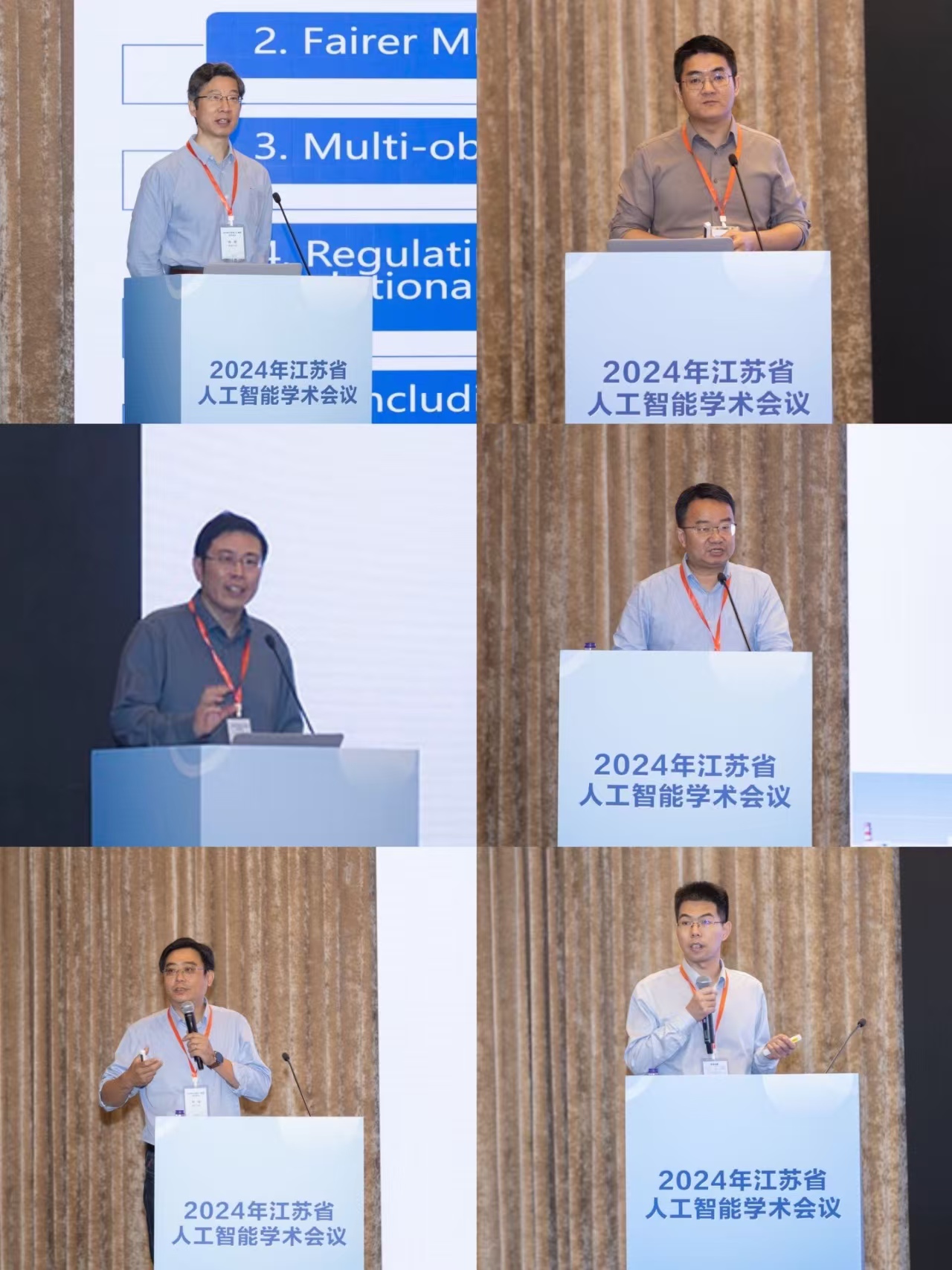会议期间,岭南大学的姚新教授、国防科技大学的刘新旺教授、东南大学的张敏灵教授、北京邮电大学的石川教授、浙江大学的肖俊教授、南京理工大学的李泽超教授进行了6场特邀报告。会议期间还进行了顶会/顶刊论文交流,邀请了省内外 2023和2024年在人工智能领域顶级国际期刊和会议发表的论文工作进行报告,参与交流的论文发表在国际期刊《JMLR》、《IEEE TPAMI》以及国际会议NeurIPS、IJCAI等。