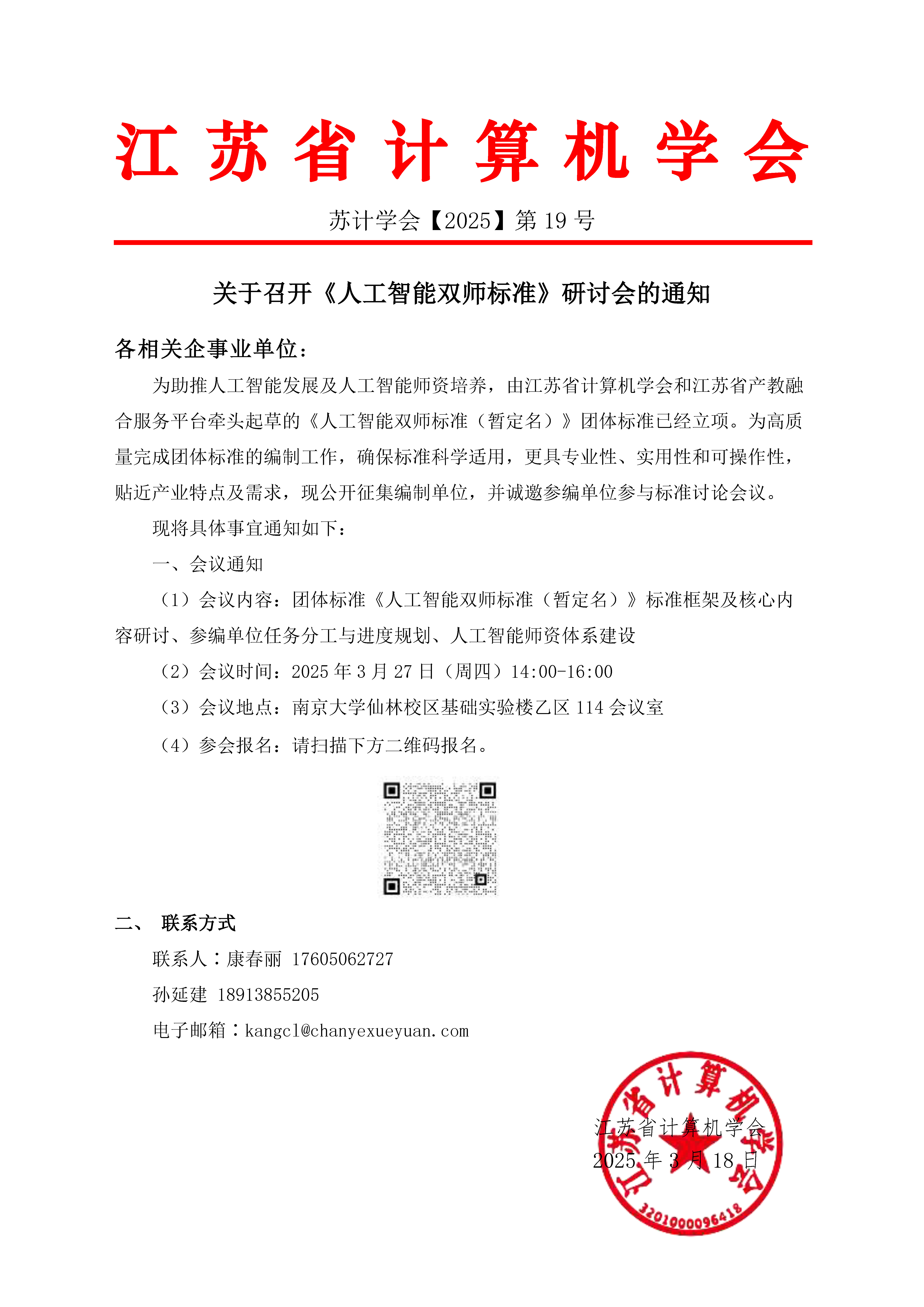 秘书处市内联络点 地址: 江苏省南京市汉口路22号 邮编:210093 电话/传真:025-86635622