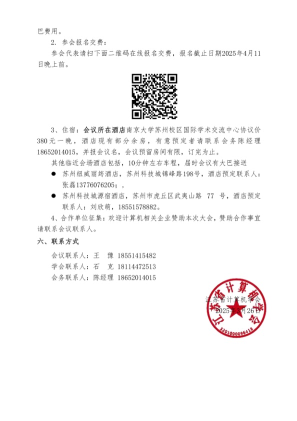 秘书处市内联络点 地址: 江苏省南京市汉口路22号 邮编:210093 电话/传真:025-86635622