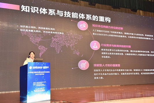 年会设置五大主题板块,涵盖数智化转型、专业建设、教材创新、AI实战应用及技能竞赛设计。南京大学金莹教授在《职业院校人工智能教育思考》报告中指出,人工智能教育需以“基础+场景+创新”为核心,培养兼具技术能力与职业素养的复合型人才。