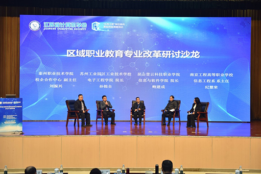圆桌沙龙分为两个主题。江苏电子信息职业学院刘东风校长主持区域职业教育专业改革研讨沙龙,来自南京工程高等职业学校、昆山登云科技职业学院等院校的专家,围绕产业学院建设、市域产教联合体运行、AI助教案例等议题展开深度研讨,现场互动踊跃,为职教改革提供了丰富的地方经验。