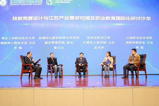 江苏信息职业技术学院物联网工程学院与士官学院党总支书华驰教授主持技能竞赛设计与江苏产业需求对接及职业教育国际化研讨沙龙。来自南京工业职业技术大学、盐城幼儿师范高等专科学校、苏州市职业大学、江海职业技术学院等学校的竞赛教练等围绕赛点遴选、以赛促教、世赛对接等主题深度探讨,解惑破局。