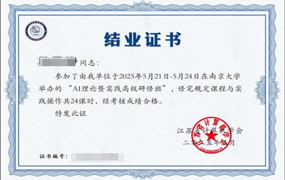 5月23日下午,研修班举行了结业仪式,承办方为全体学员颁发了“技术培训合格证书”。南京某高校骨干教师表示:“这份证书不仅是专业能力的认可,更是一份责任——未来要将AI技术真正融入教学场景,培养更多智能时代的创新人才。”。