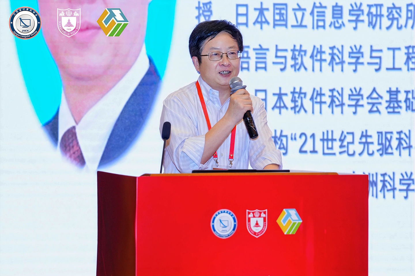 开幕式后,中国科学院院士、计算机软件新技术全国重点实验室主任(南京大学)、南京大学吕建教授,作了题为《数智化新时代软件定义一切探赜》主题报告;国家级人才计划入选者、哈尔滨工业大学(深圳)特聘校长助理、苏州大学未来科学与工程学院院长张民教授作了题为《人工智能:从信息世界到物理世界》主题报告; 北京大学讲席教授、计算机学院胡振江院长,作了题为《“双向计算”研究探索:一段交织愉悦与挑战的旅程》主题报告; 华为编程语言首席专家、仓颉编程语言首席架构师、南京大学冯新宇教授作了题为《工业界视角看编程语言设计和实现 —— 从仓颉语言谈起》主题报告。JSCS常务理事、南京大学计算机学院院长马晓星教授和JSCS 常务理事、东南大学计算机科学与工程学院、软件学院院长张敏灵教授分别主持大会主旨报告。
