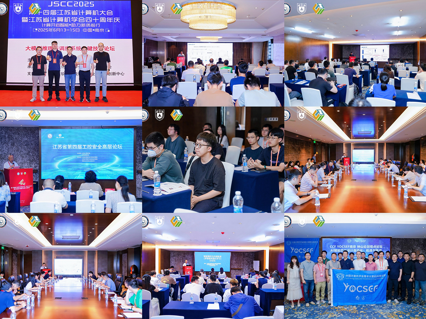 2025年6月13至6月15日,由中国计算机学会和江苏省科协指导,江苏省计算机学会、江苏省软件新技术与产业化协同创新中心主办,计算机与人工智能领域重点实验室联盟、江苏省人工智能学会、江苏省软件行业协会、江苏省信息技术应用学会、江苏省科学技术协会电子信息领域学会联合体协办,南京大学承办的第十四届江苏省计算机大会(JSCC2025)暨江苏省计算机学会四十周年庆在南京隆重召开。