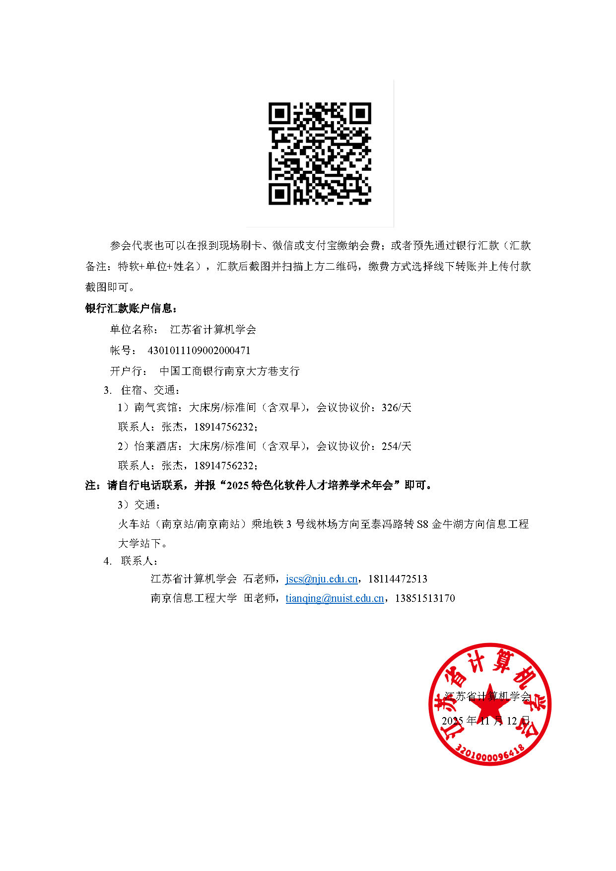秘书处市内联络点 地址: 江苏省南京市汉口路22号 邮编:210093 电话/传真:025-86635622
