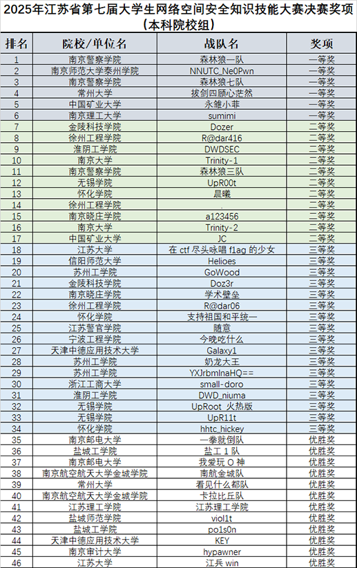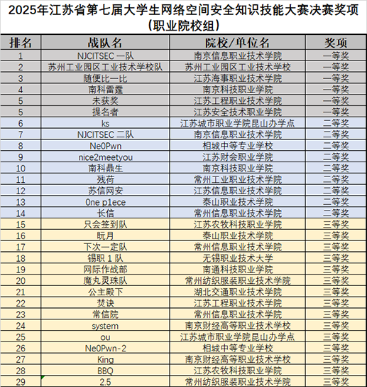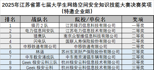 附:2025年江苏省第七届大学生网络空间安全知识技能大赛决赛奖项公布
