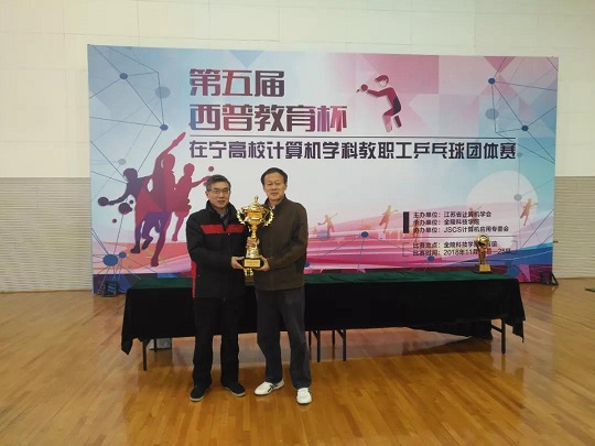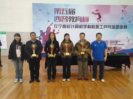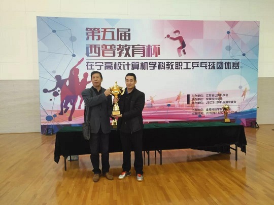 2018年11月24-25日“西普教育杯”第五届在宁高校计算机学科教职工乒乓球团体赛在金陵科技学院开赛,经过两天紧张激烈而和谐有序的比赛,来自14所在宁高校的各支计算机学科院系代表队认真参赛,顽强拼搏,赛出了较高水平和良好风尚。