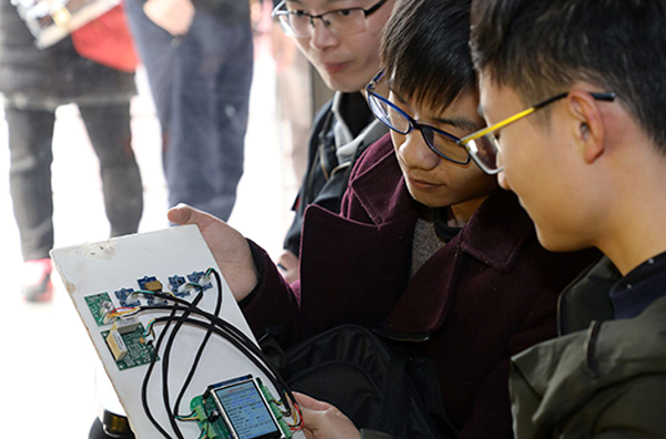 此次活动中,由江苏省计算机学会嵌入式系统与物联网专业委员会主任苏州大学计算机科学与技术学院王宜怀教授团队研发的“金葫芦”通用嵌入式计算机产品也亮相现场。由于物联网开发是软件硬件综合体,往往开发门槛高、成本大、周期长。基于此,这套产品体系犹如设计好的“葫芦”, 通过建立符合软件工程基本原理的体系,为用户提供了各类标准模块,用户只需“照葫芦画瓢”,不需要从“零”做起,而是从“六分熟”做起,达到降低窄带物联网应用开发的难度,将复杂问题简单化,为大家进行物联网开发提供坚实的基础。王宜怀教授表示,此次活动将 “整合系统”以及数据连通的过程呈现给大家,让学生通过现场编程,对信息进行采集和传输,同时通过微信平台进行获取,从而直观地感受信息传输的现代科技手段,为未来学生就业甚至创业,提供一个体验式学习的机会。