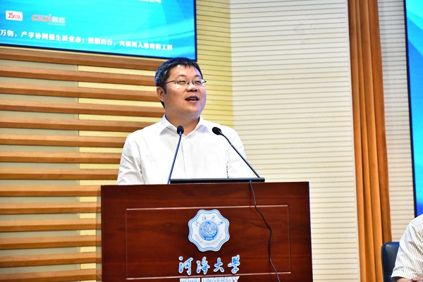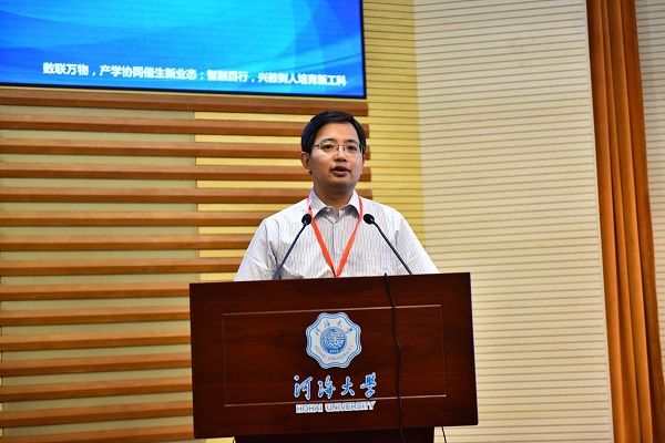河海大学许峰副校长代表承办单位致欢迎辞,他首先对各位专家、代表的到来表示了热烈的欢迎,并指出迈入 21 世纪,以物联网、云计算、大数据、人工智能为代表的新一代信息技术加速突破应用,开启了一场全球性、全方位的信息革命。高校作为人才培养、知识创新的摇篮,应该以本届大会为契机,紧密对接国家重要战略和行业重大需求,进一步深化教育教学改革,创新人才培养模式,充分发挥科研平台优势,为江苏省以及国家信息技术领域贡献力量。