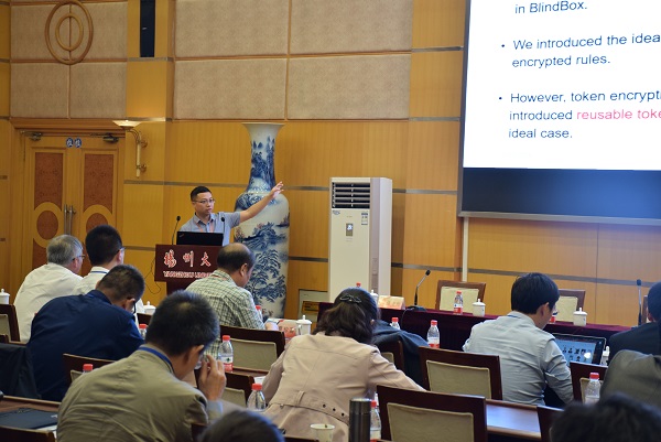 福建师范大学教授宁建廷作《PrivDPI: Privacy-Preserving Encrypted Traffic Inspection with Reusable Obfuscated Rules》的主题报告