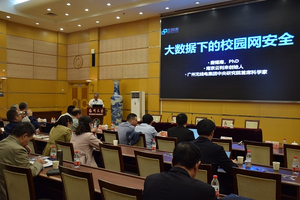 广州无线电集团研究院首席科学家、南京云利来软件科技有限公司CEO唐锡南作《大数据下的校园网安全》的主题报告