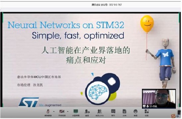 2、 意法半导体孙龙凯经理做特邀报告“嵌入式人工智能在产业界落地的痛点和应对”,讲述了嵌入式人工智能在产业界的市场回顾和现状、产业界所面临的痛点和问题、半导体原厂在嵌入式人工智能领域的布局和策略、嵌入式人工智能未来的机遇。