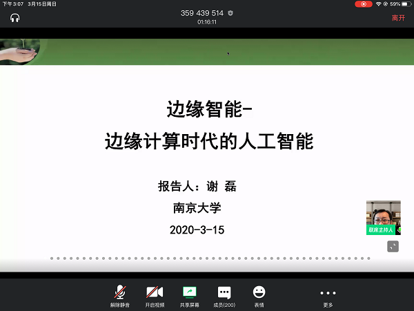 2020年3月15日,由江苏省计算机学会嵌入式系统与物联网专委会主办的“2020年嵌入式人工智能创新论坛”于2020年3月15日在“腾讯会议”平台在线顺利举行,JSCS嵌入式系统与物联网专委会委员及省内外相关专业业内人士共200余位代表参加了本次在线会议。