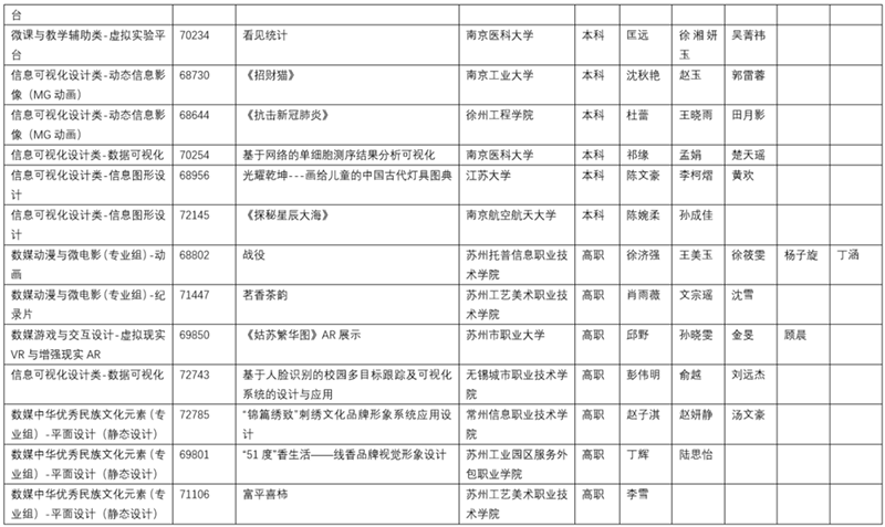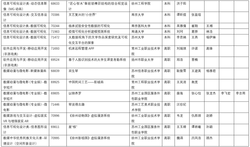 2020年江苏省大学生计算机设计大赛暨2020年(第13届)中国大学生计算机设计大赛江苏省级赛共收到有效报名作品907件,参赛学校84所,其中本科类院校64所,共提交作品812件;高职高专类院校20所,共提交作品95件。