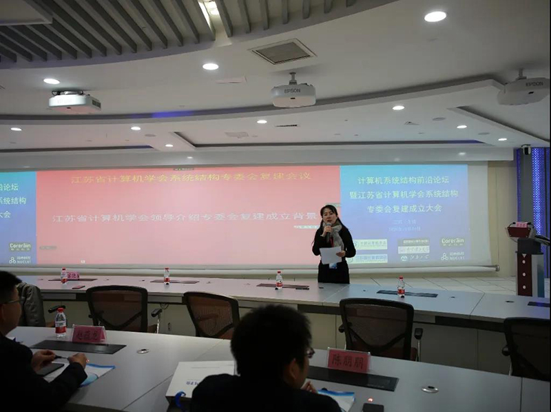 首先,江苏省计算机学会秘书长金莹介绍了专委会复建成立背景;接着,南京理工大学张功萱教授汇报了系统结构专委会筹备工作组的前期筹备工作,并进行了新委员的增选,9位新申请的委员都进行了自我介绍。