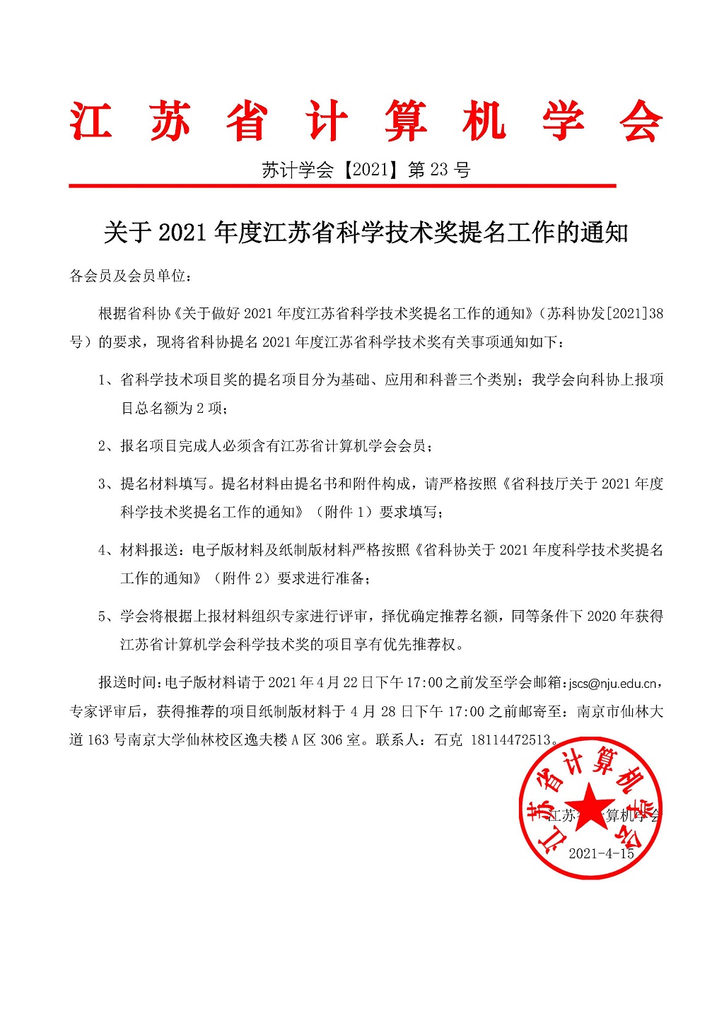 秘书处市内联络点 地址: 江苏省南京市汉口路22号 邮编:210093 电话/传真:025-86635622