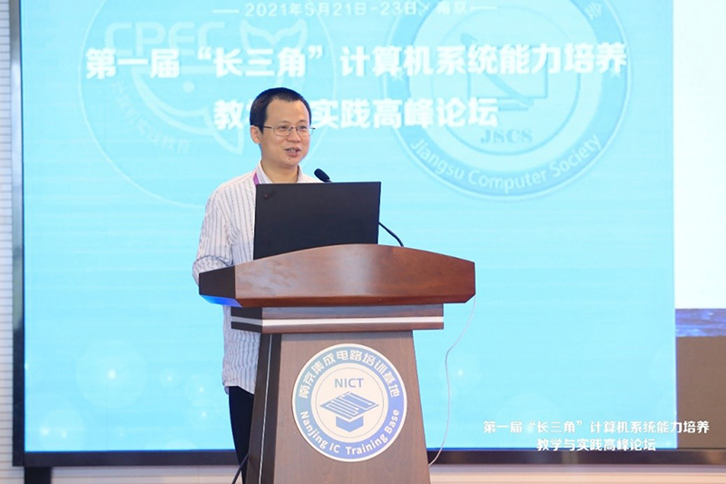 由江苏省计算机学会和中国计算机实践教育联合会联合主办的第一届“长三角”计算机系统能力培养教学与实践高峰论坛于2021年5月21日~23日在南京市江北新区的南京集成电路培训基地顺利召开,论坛的主题是“新形势下计算机系统能力培养类课程及实践课程发展的探讨”,论坛从“教学实践”、“产教融合”和“案例培训”三个环节展开研讨与交流。