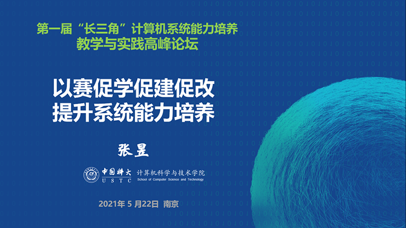 因疫情原因,中国科学技术大学张昱副教授通过视频线上作了“以赛促学促建促改,提升系统能力培养”报告,介绍了“系统能力培养”安徽工作组自2017年以来开展的以赛促学促建促改等工作。