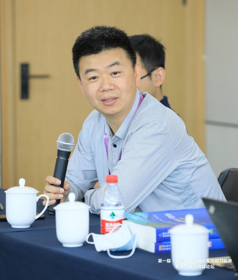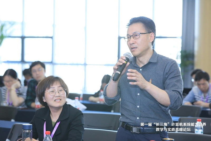 主题报告结束后,系统结构专委会主任南京理工大学张功萱教授主持了“高峰论坛Panel”,邀请依元素公司夏良波总经理、机械出版社温莉芳常务副总经理和有关高校教授们一起,围绕着“不同类型高校计算机系统能力培养目标有何不同、如何再实践教学中加强系统能力的培养、如何通过强化系统能力培养深化与产业发展需求融合来助推信创人才培养”等三个方面问题开展研讨,并回答了安徽工业大学陈业斌教授、南通大学顾晖副教授、淮阴工学院孙成富副教授等参会人员的问题,交流观点和看法。