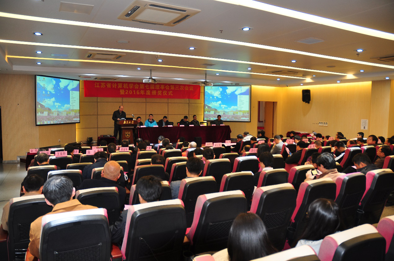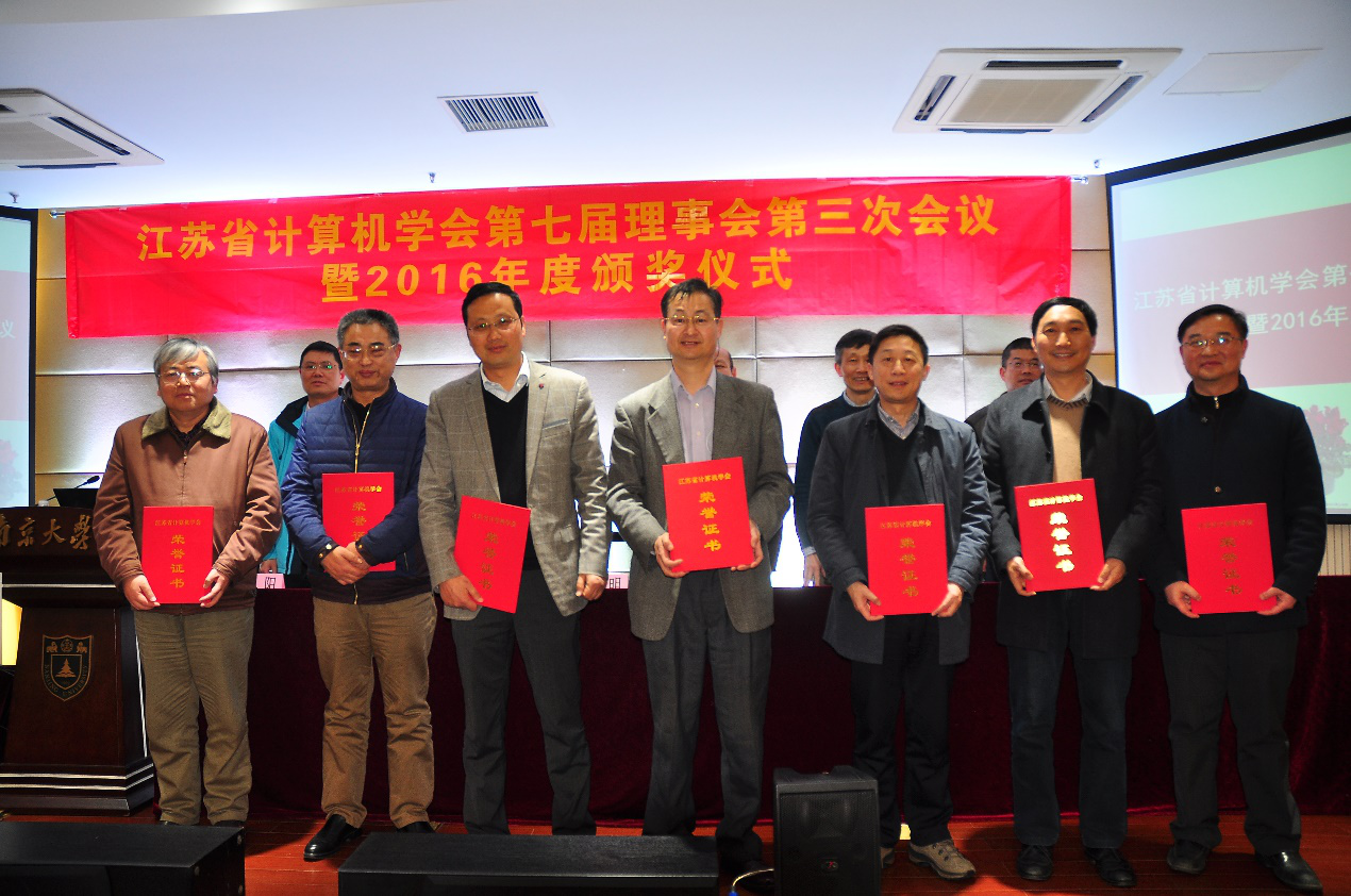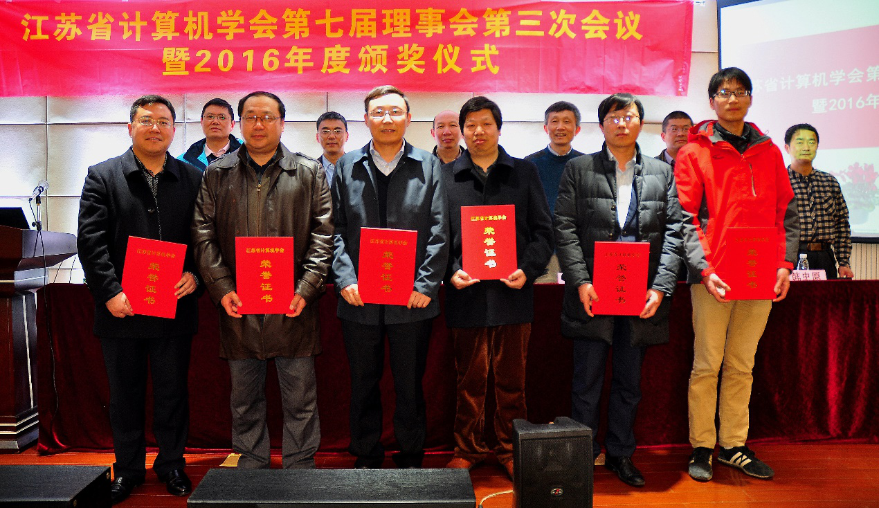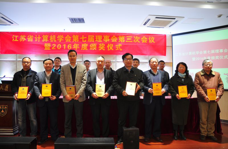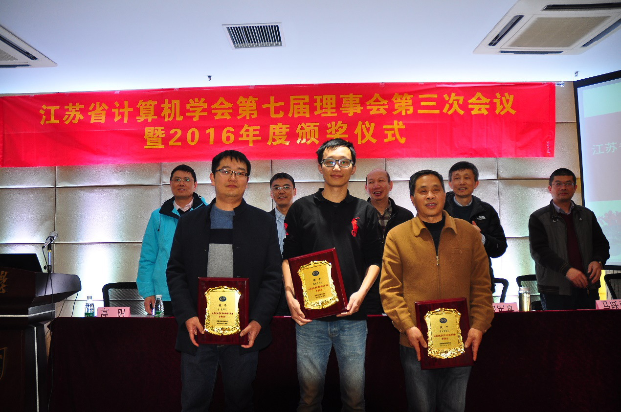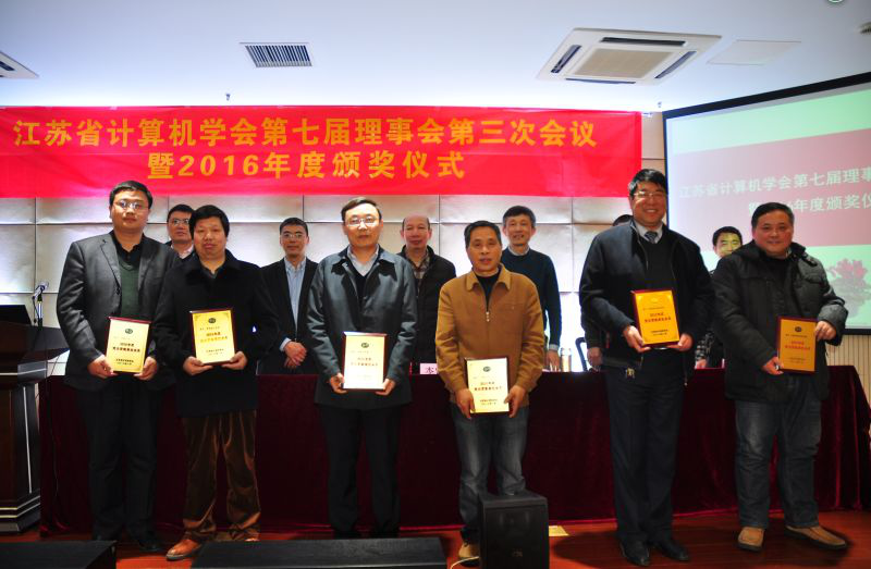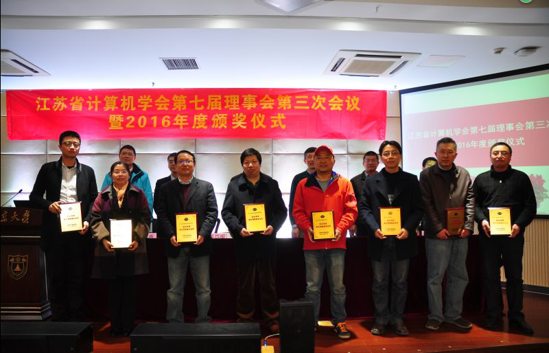 阳主任主持。罗军舟副理事长代表理事会宣读了江苏省计算机学会2016年度奖励与表彰决定,并由学会领导分别为获得优秀计算机科技工作者、青年科技奖、优