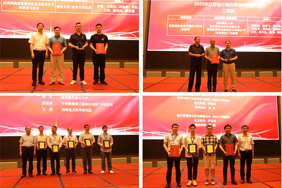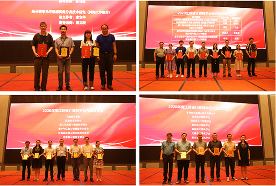 大会同期举行了隆重的颁奖典礼,向获得2020年江苏省计算机学会五大奖项(科学技术奖、优秀科技工作者奖、青年科技奖、优秀博士学位论文奖、优秀硕士学位论文奖)的获奖者颁发奖牌和证书。同时向获得2020年江苏省计算机学会科技服务创新奖、科技服务贡献奖、先进专委会奖、杰出贡献单位会员奖、突出贡献单位会员奖、先进单位会员奖、先进工作者奖、先进个人会员奖的单位和个人颁发奖牌和证书。