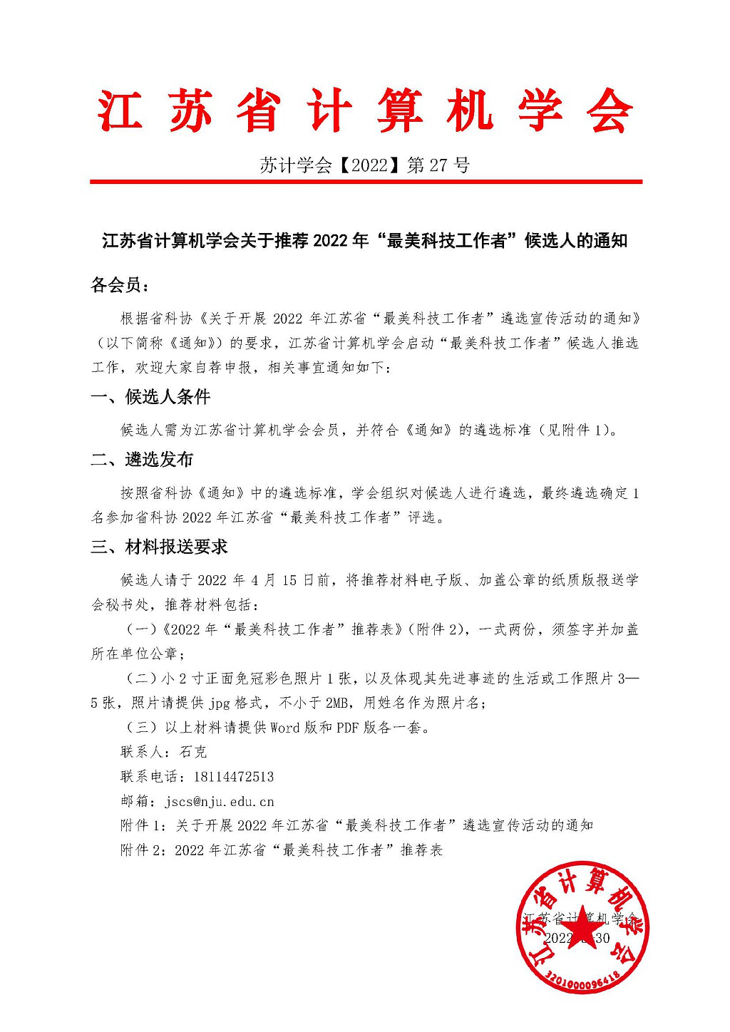 秘书处市内联络点 地址: 江苏省南京市汉口路22号 邮编:210093 电话/传真:025-86635622
