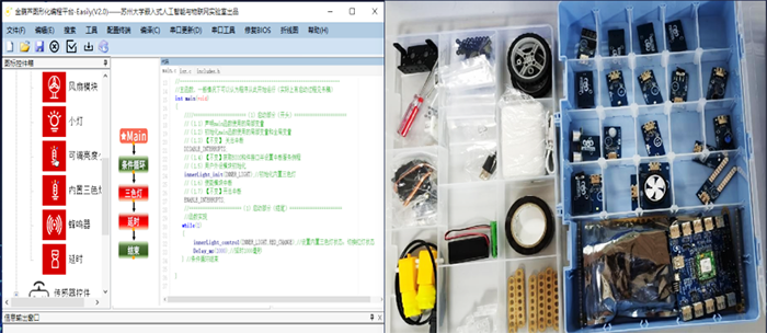 党的十九大报告指出“科技兴国在中华民族伟大复兴中起着支撑和引领的作用”,“要培养造就出一大批具有国际水平的科技人才”。江苏省计算机学会授牌的江苏省计算机科普教育基地之一——宿迁学院与苏州大学联合组建开发团队,怀着科技兴国提升青少年综合素质的使命,鼓舞中国青少年以国为傲,种下“国产化”的种子,推出了拥有自主知识产权的国产图形化编程平台。这是一个用拖拽图标替代编程语言图形化编程系统,它降低了青少年编程、特别是硬件编程的门槛,培养青少年对编程的兴趣,提升青少年解决问题的综合素质能力。