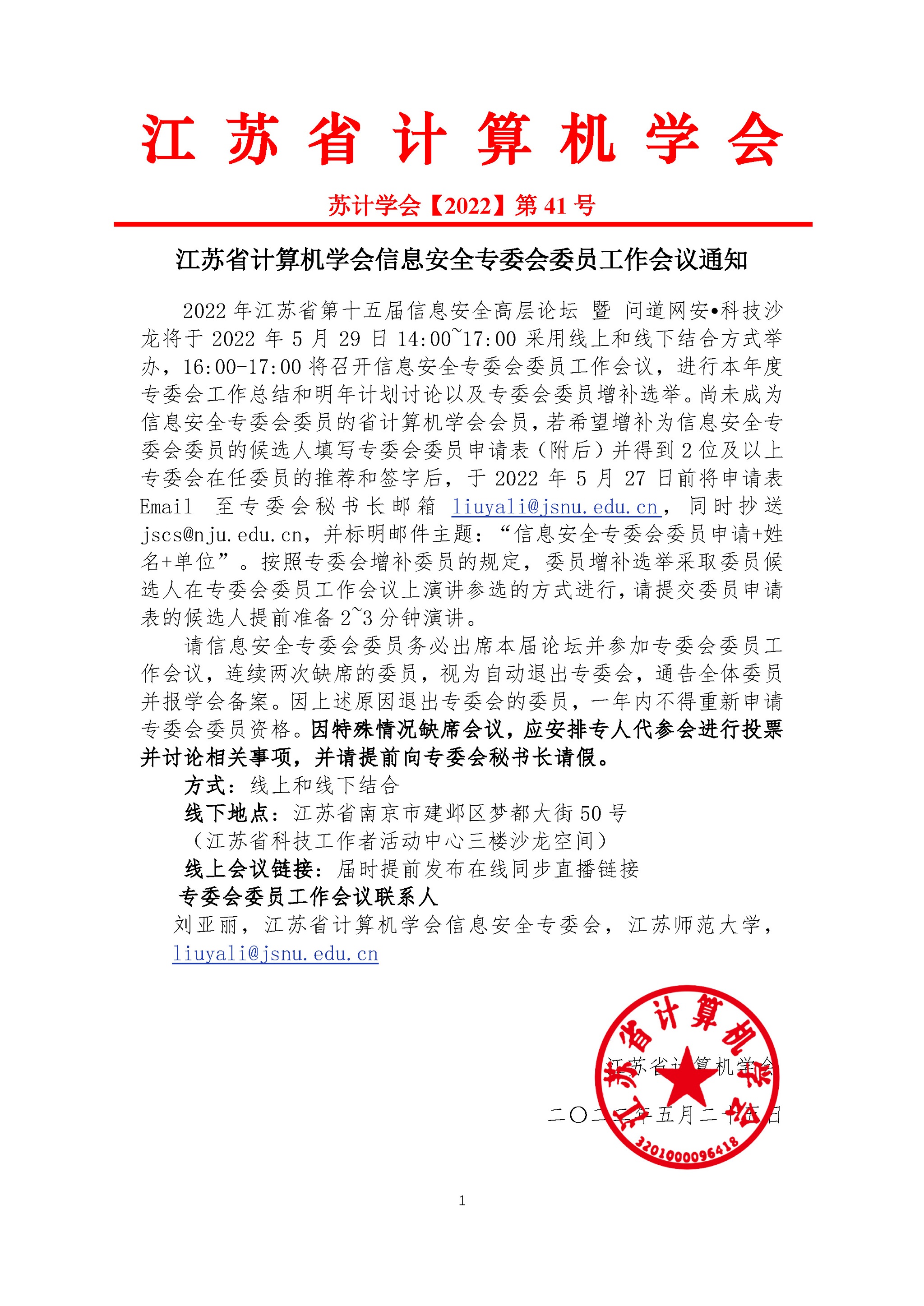 秘书处市内联络点 地址: 江苏省南京市汉口路22号 邮编:210093 电话/传真:025-86635622