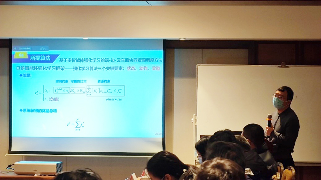 本次活动第二部分学术交流环节,邀请了南京邮电大学通信与信息工程学院副院长鲍秉坤教授做题为“跨模态图像生成”的学术前沿报告,介绍近期跨模态图像生成任务的研究进展,并从增强图文信息的融合和保证语义一致性的角度出发,介绍团队在文本生成图像任务的研究思路和研究成果,最后探讨跨模态图像生成的发展趋势和研究方向。本次活动同时邀请了南京理工大学周俊龙副教授做题为“端-边-云车路协同资源调度优化方法初探”的学术报告,介绍了一种基于多智能体强化学习的资源调度方案以保障端-边- 云车路协同系统中车辆的用户体验。该方案通过充分利用端-边-云架构的特点并采用集中训练-分散执行的框架来构建深度神经网络,以制定任务卸载和车路计算资源分配的最优决策,最终实现可靠性约束下的系统时延和能耗优化。