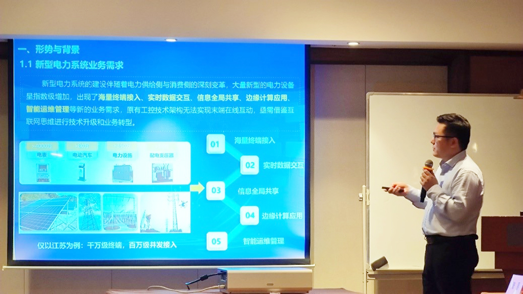 本次活动还邀请了南京南瑞信息通信科技有限公司的王亮和周忠冉两位专家做了有关云边端协同和智能电网的专题报告。王亮专业重点介绍基于云边端协同的智慧物联建设赋能新型电力系统,探讨了创新感知模型描述、边缘人物最优化编排、边缘任务调度和云边迁移等关键技术和物联管理平台等核心产品。周忠冉专家介绍了云边端协同与智能电网-新型电力系统数字技术支撑体系,重点介绍国家电网公司新型电力系统的建设理念、数字技术支撑体系的内涵特征、体系框架和未来展望,汇报云边端协同与智能电网的最新实践成果,以数字技术为电网赋智、为业务赋能、为生态赋值,助力推动新型电力系统建设,推进数字经济高质量发展。