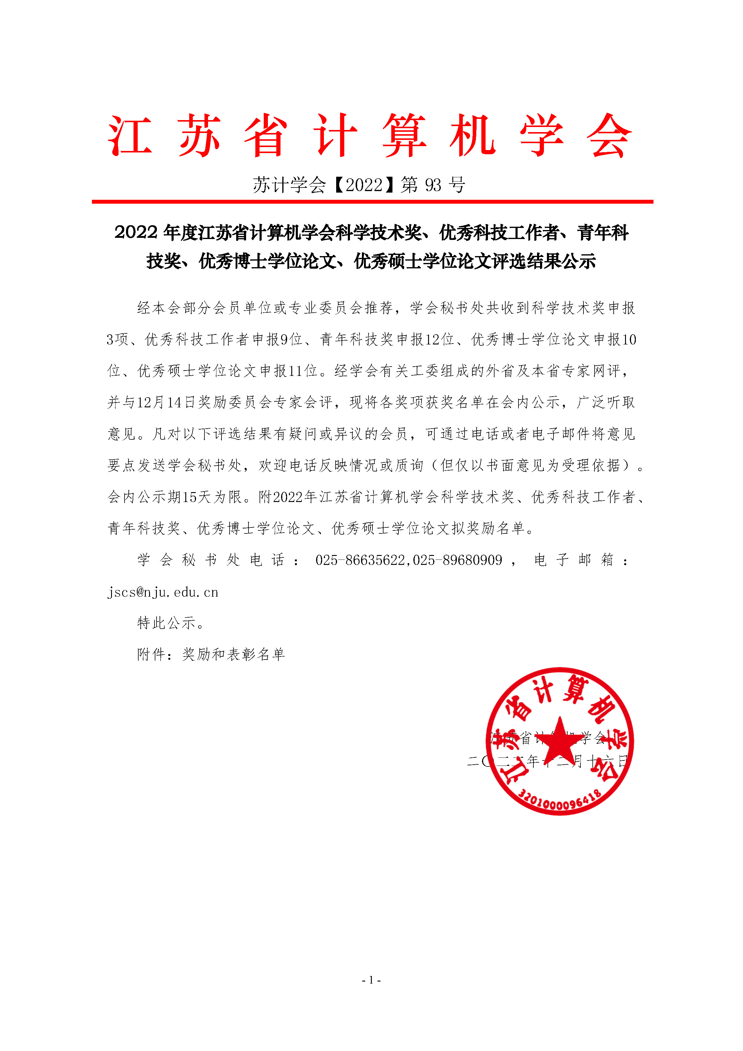 秘书处市内联络点 地址: 江苏省南京市汉口路22号 邮编:210093 电话/传真:025-86635622