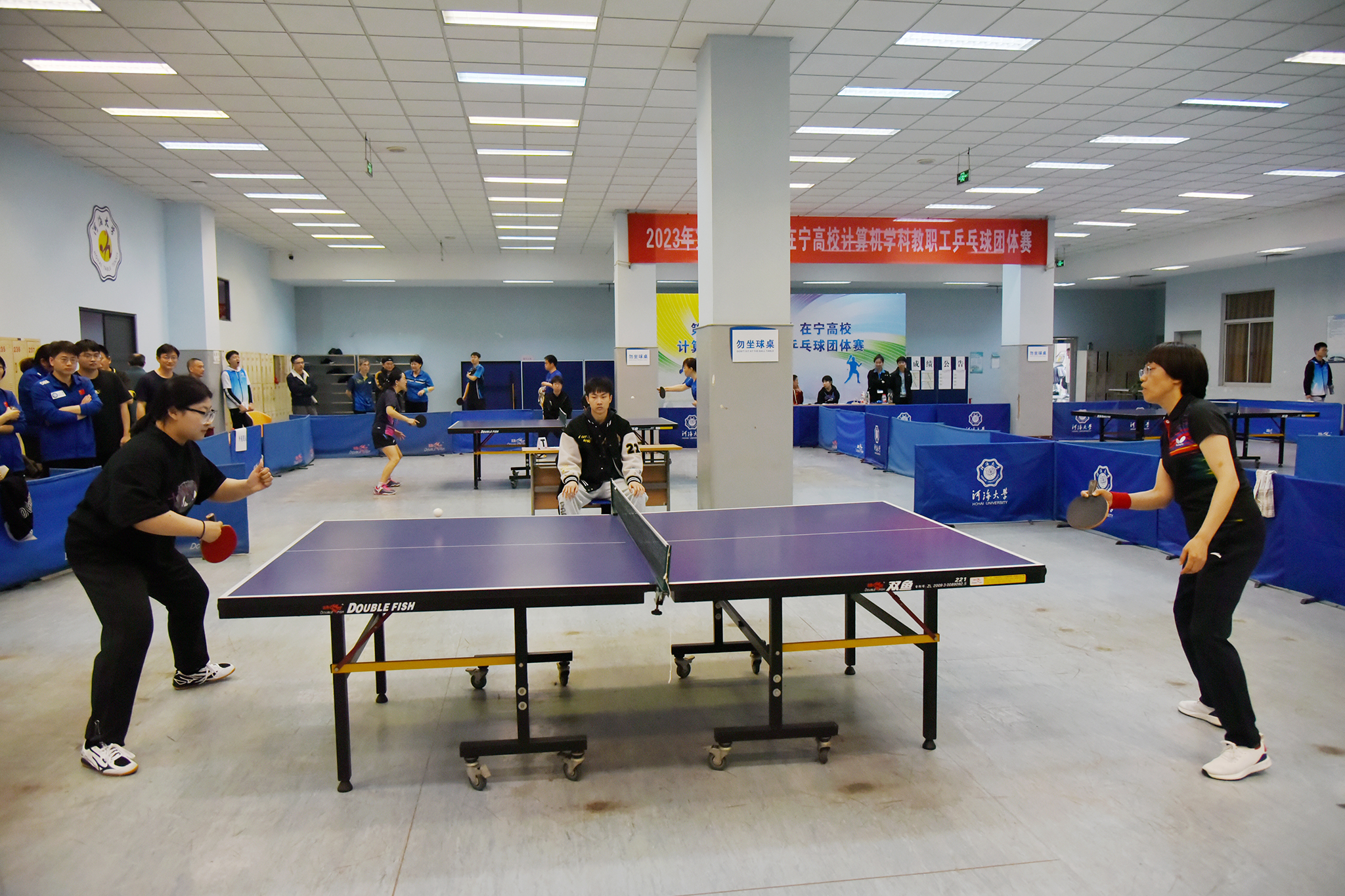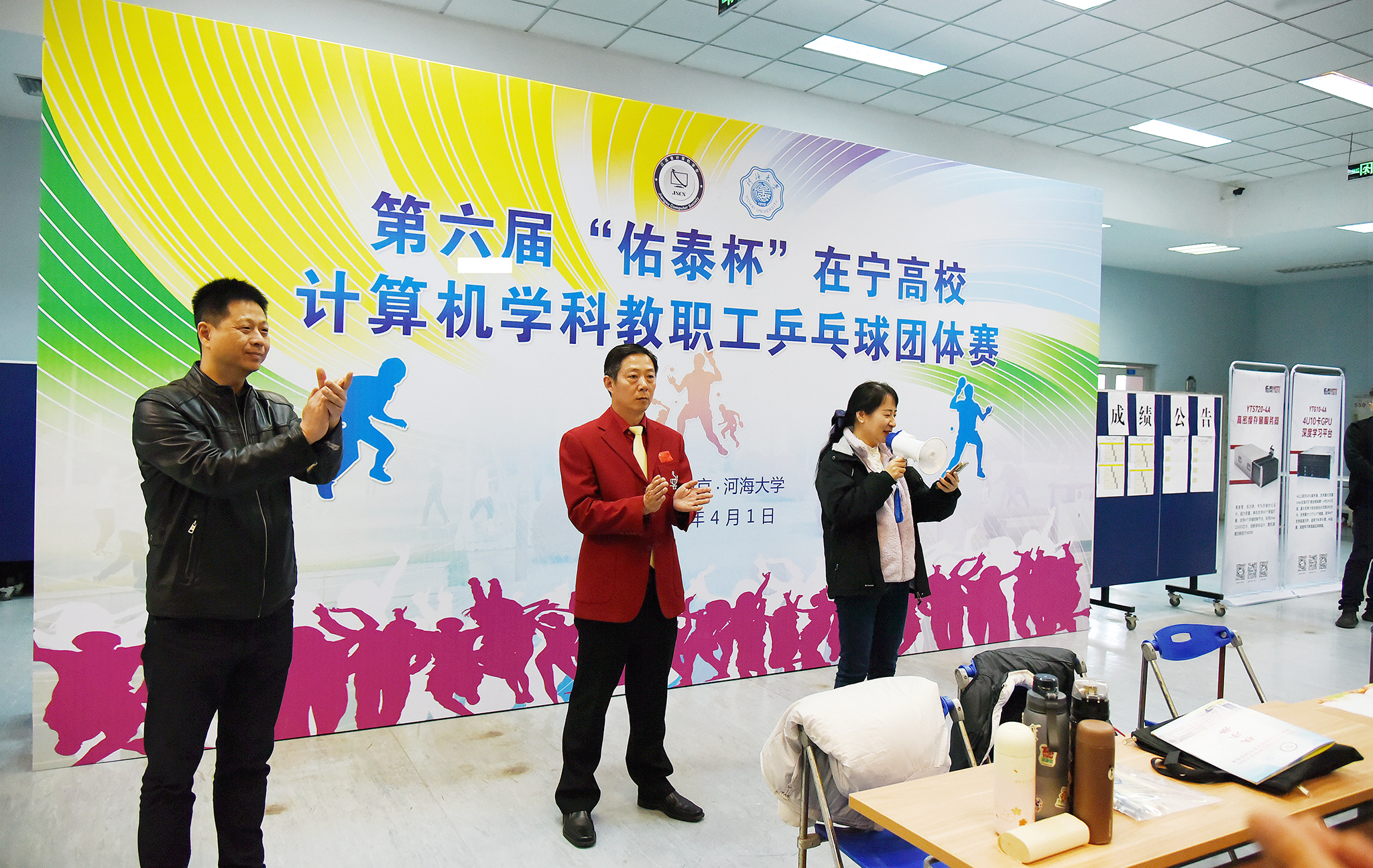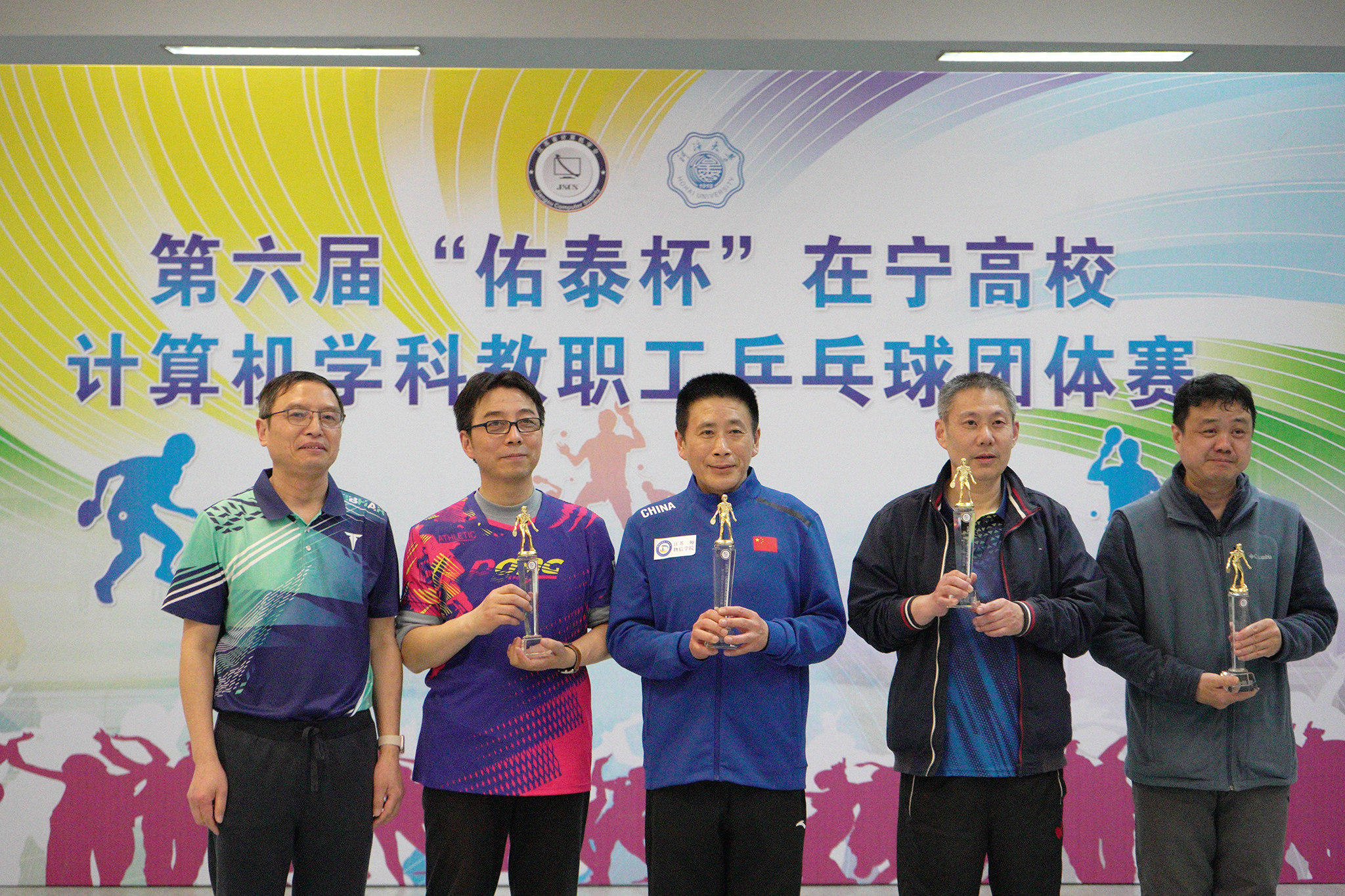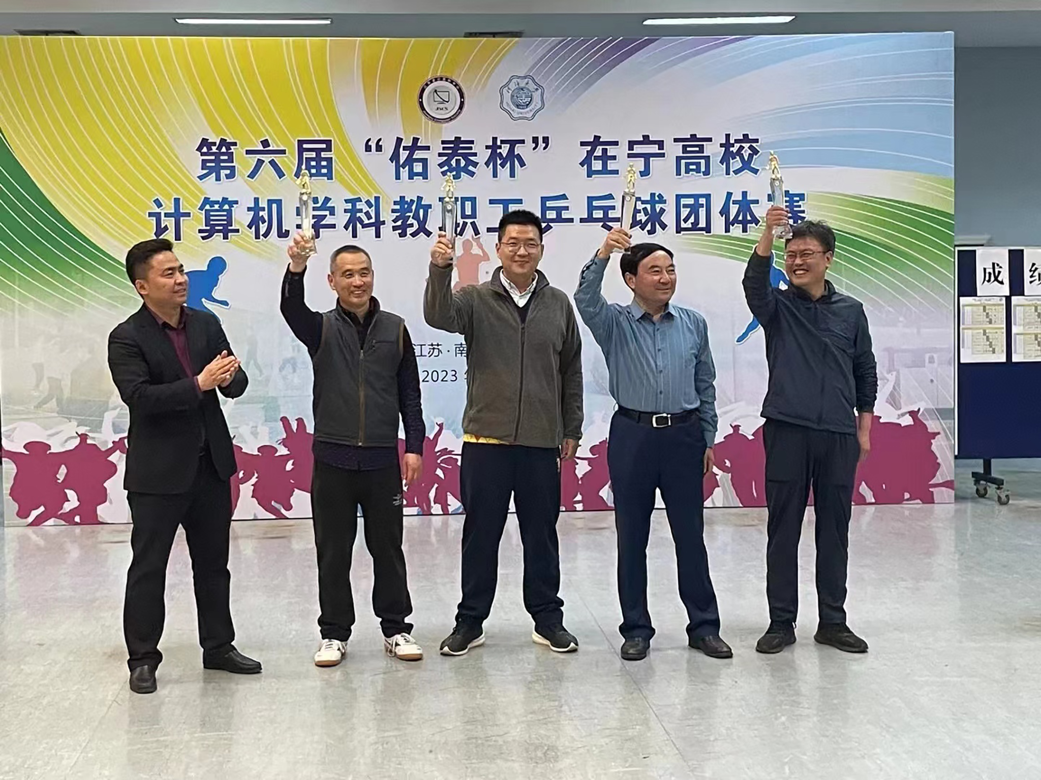 2023年4月1日第六届“佑泰杯”在宁高校计算机学科教职工乒乓球团体赛在河海大学江宁校区开赛,本届赛事由江苏省计算机学会主办,河海大学信息学部承办,佑泰信息技术集团股份公司协办。经过一天紧张激烈而和谐有序的比赛,来自南京市高校的计算机学科院系代表队及外省联合代表队共15支参赛队伍认真参赛,顽强拼搏,赛出了较高水平和良好风尚。