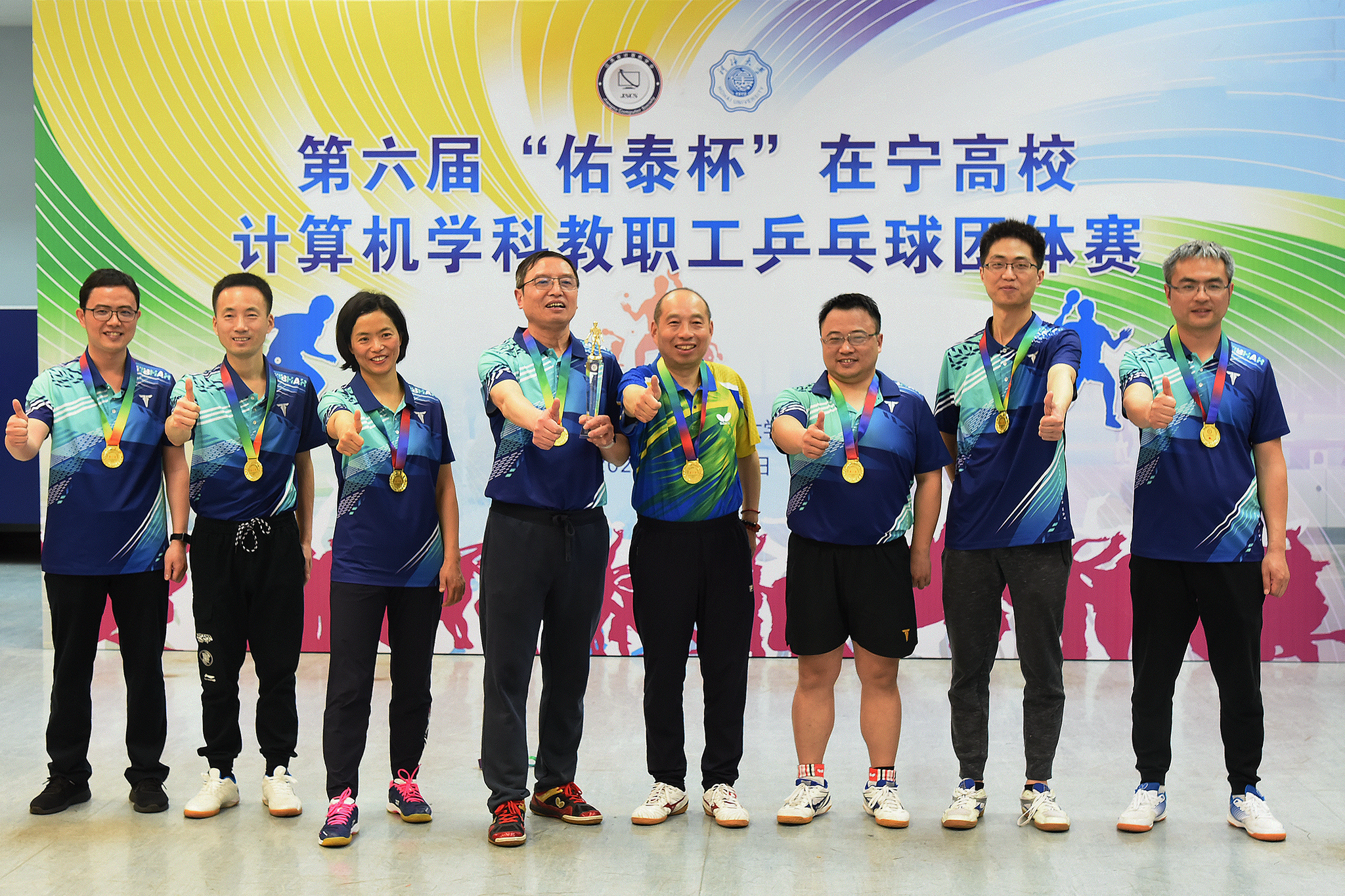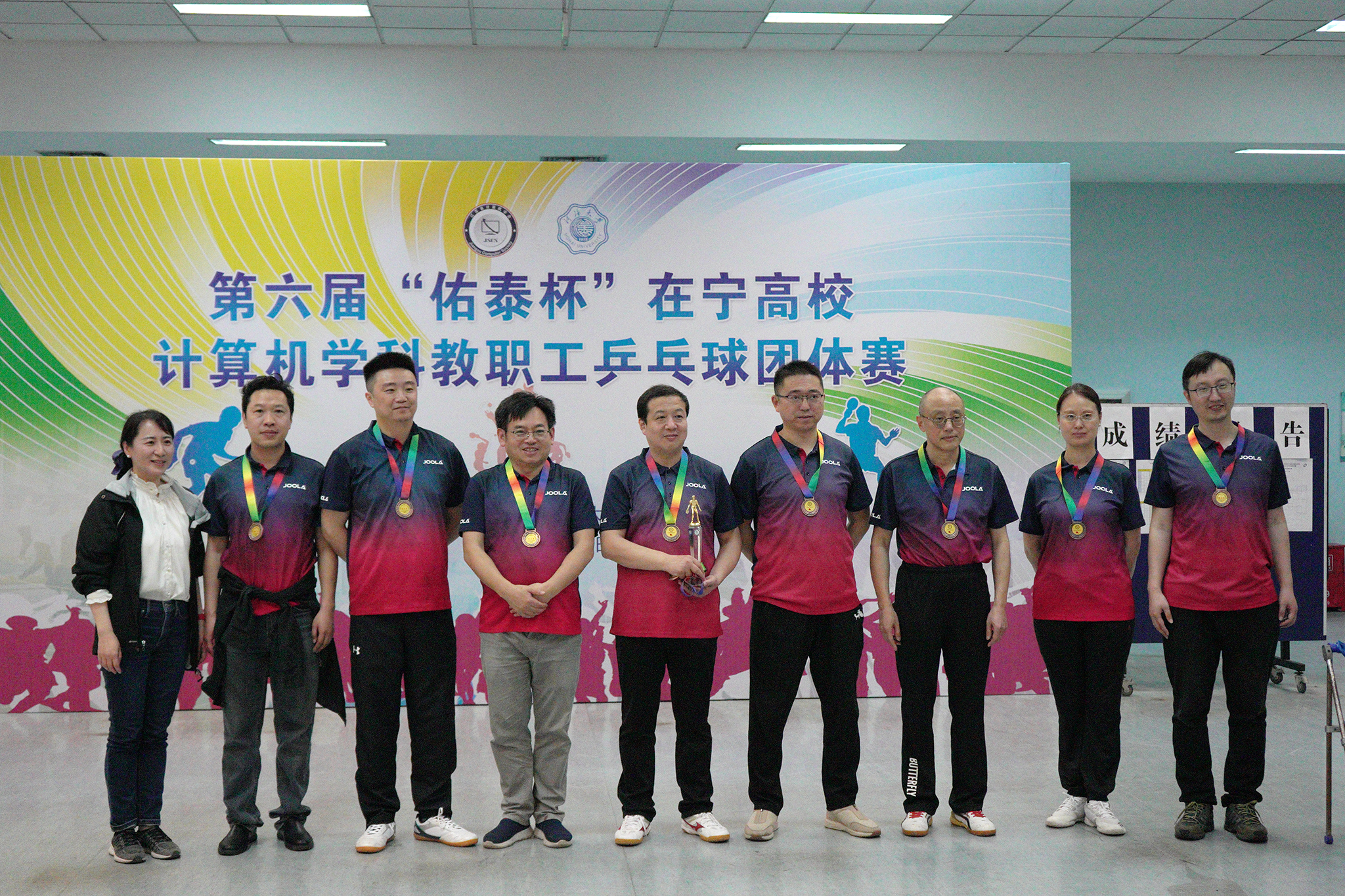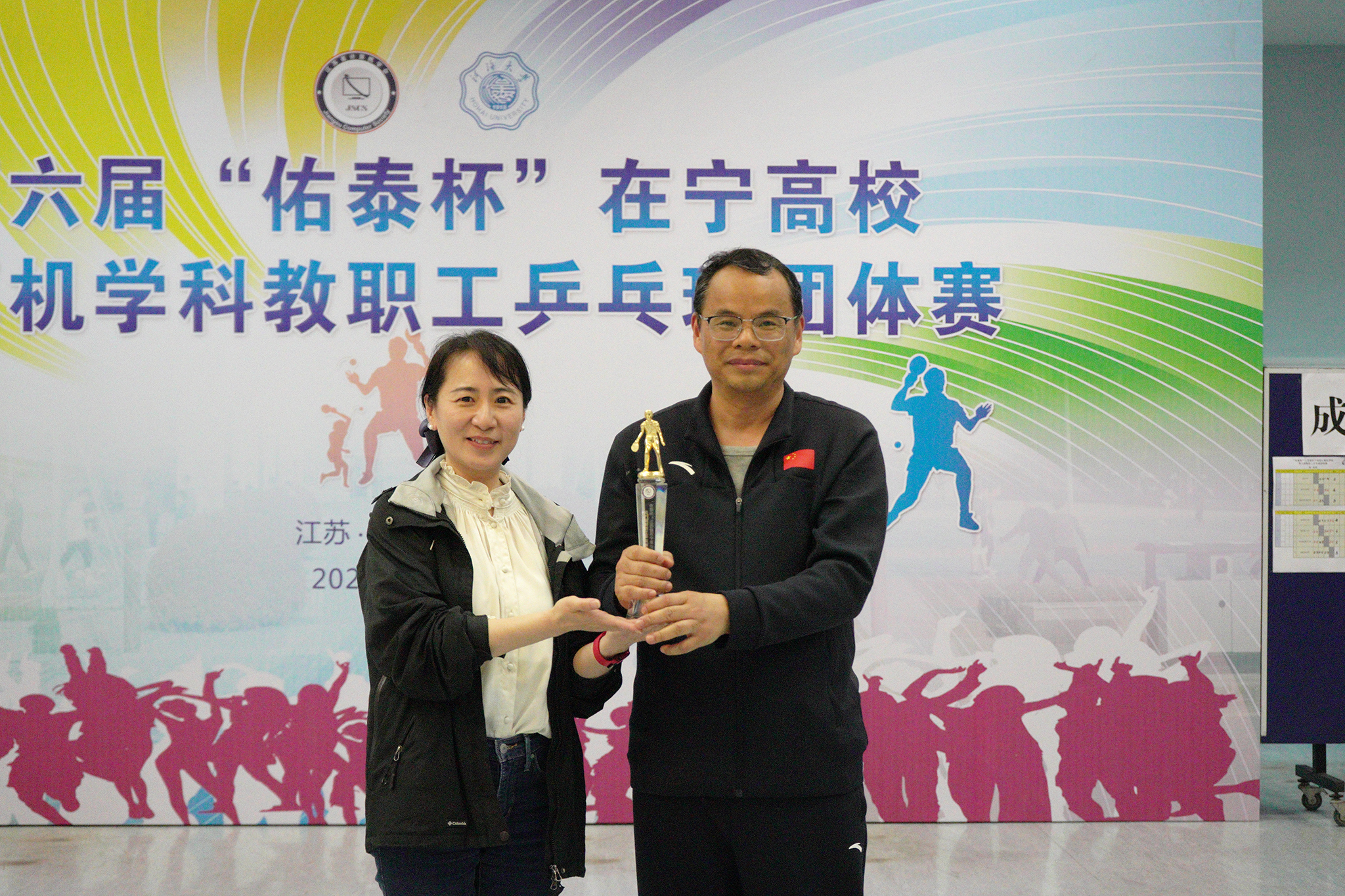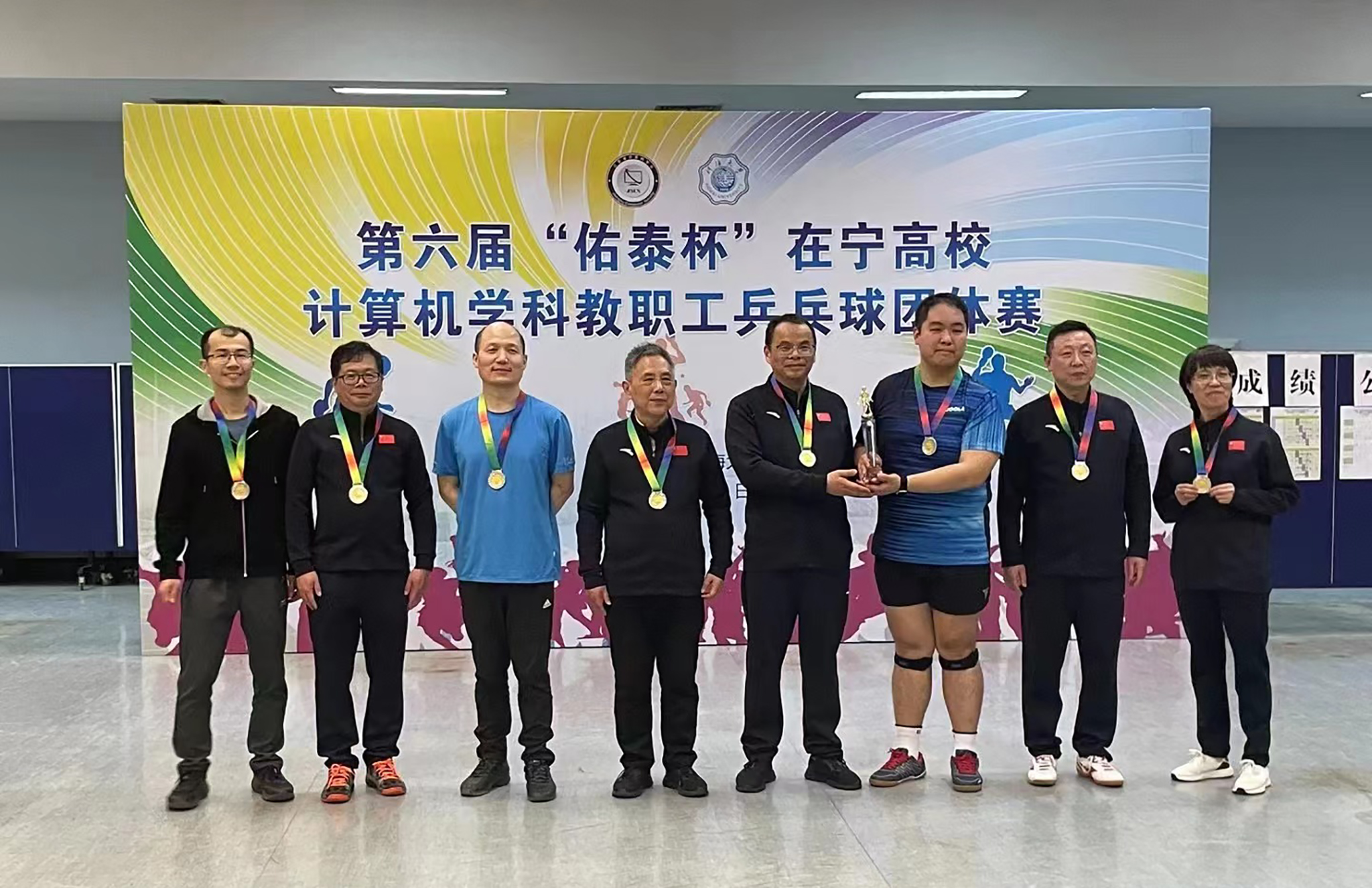 2023年4月1日第六届“佑泰杯”在宁高校计算机学科教职工乒乓球团体赛在河海大学江宁校区开赛,本届赛事由江苏省计算机学会主办,河海大学信息学部承办,佑泰信息技术集团股份公司协办。经过一天紧张激烈而和谐有序的比赛,来自南京市高校的计算机学科院系代表队及外省联合代表队共15支参赛队伍认真参赛,顽强拼搏,赛出了较高水平和良好风尚。